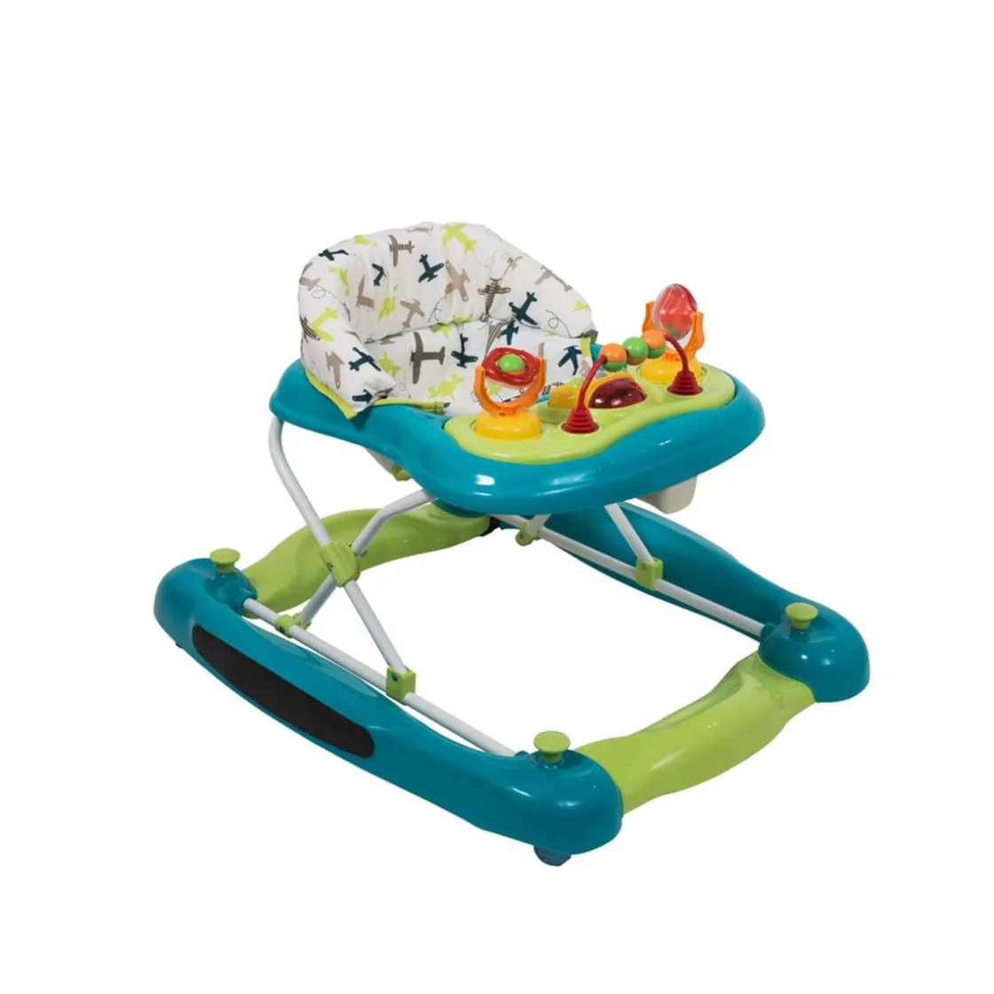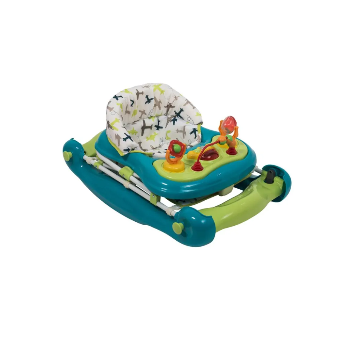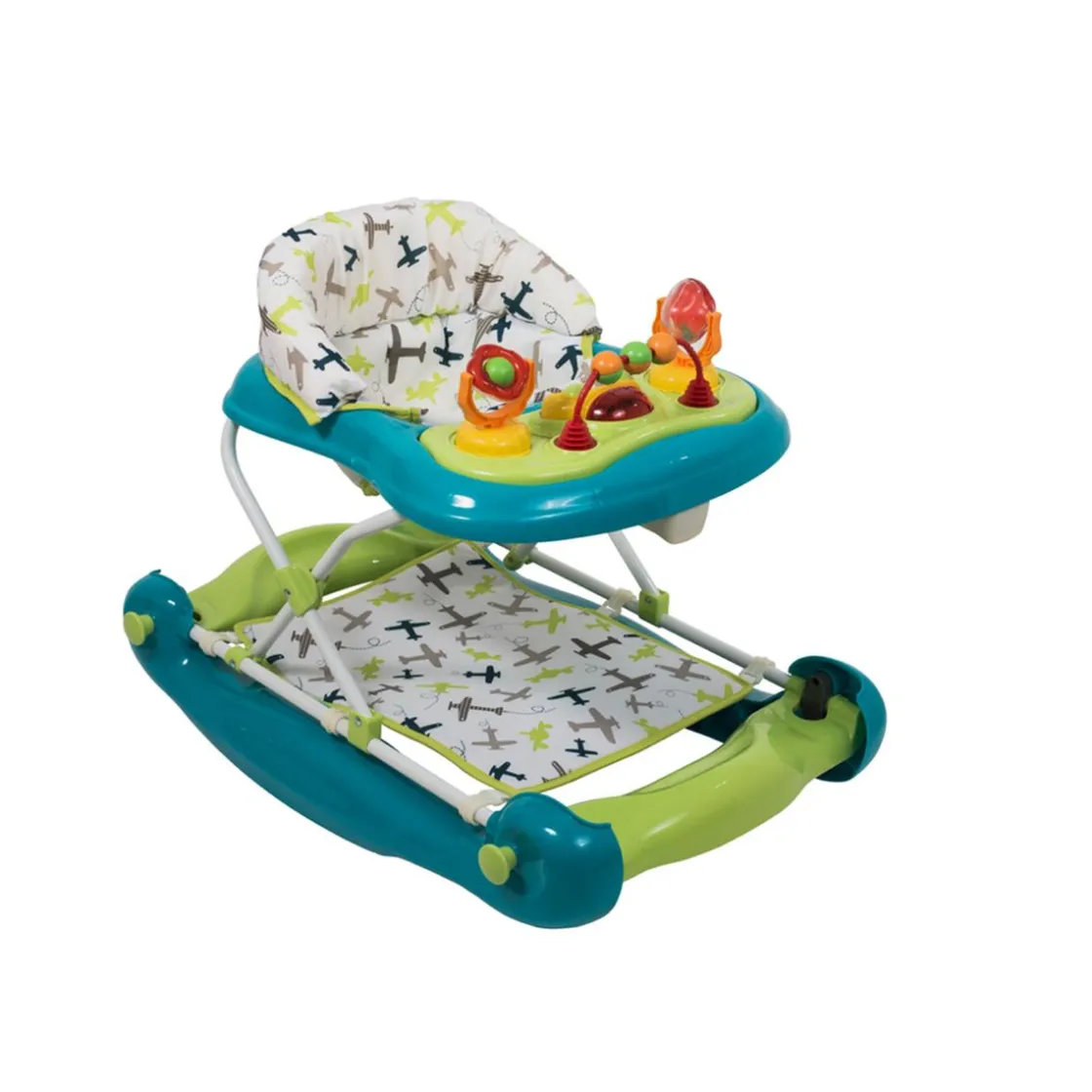 Plastimyr – Andador Balancín Azul Aviones, un andador con función de balancín y bandeja multiactividades.