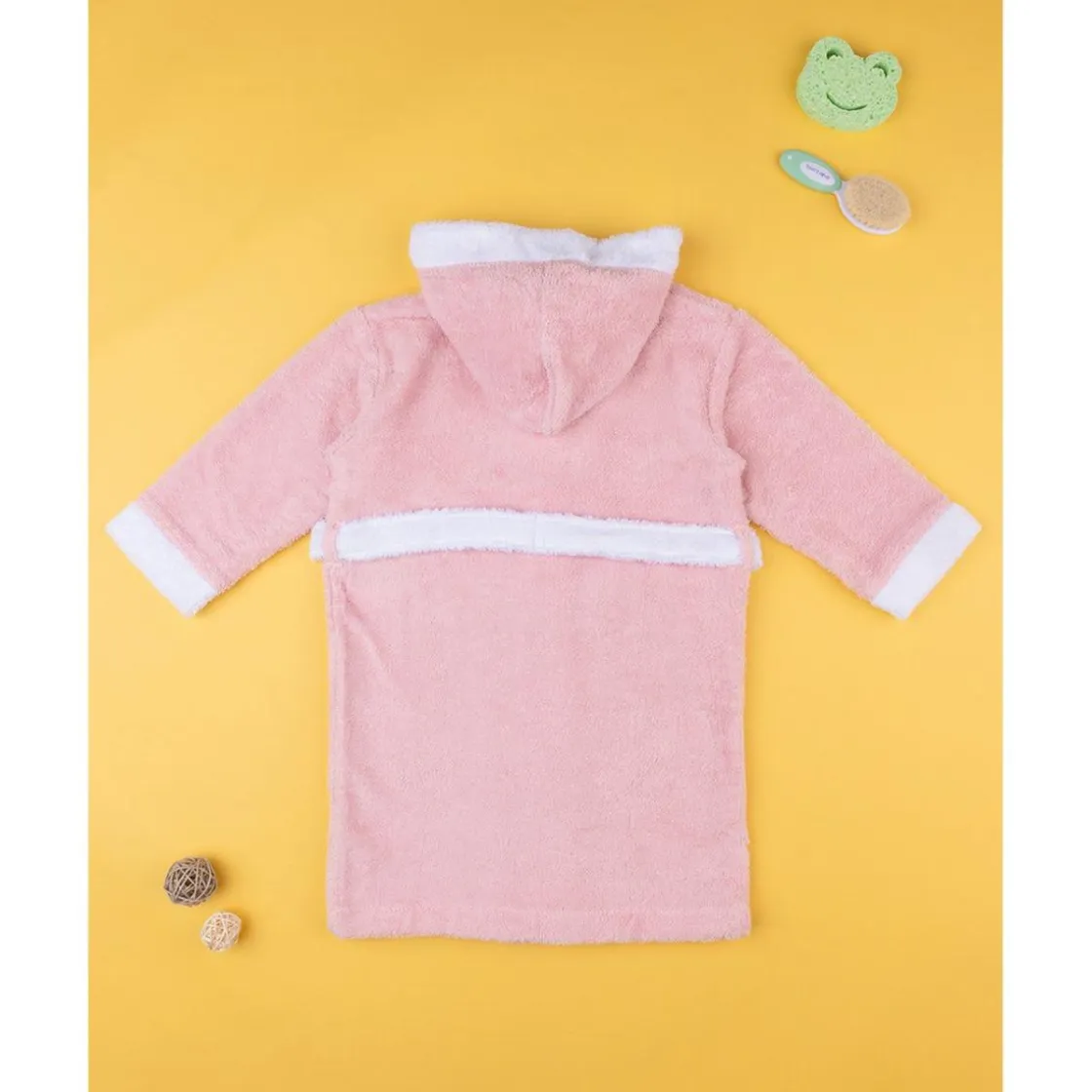 Bata clásica de felpa rosa con capucha y todo bordeado en blanco. Un cómodo cinturón blanco cierra la prenda. Bolsillos en la parte frontal. Accesorios no a la venta. El paquete contiene solo la prenda de vestir.