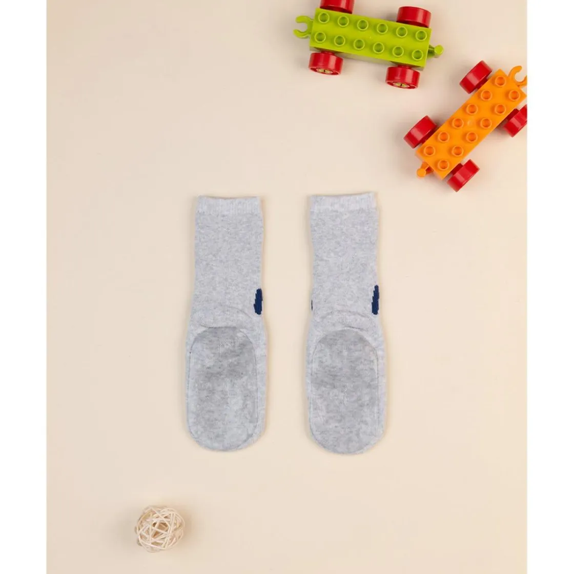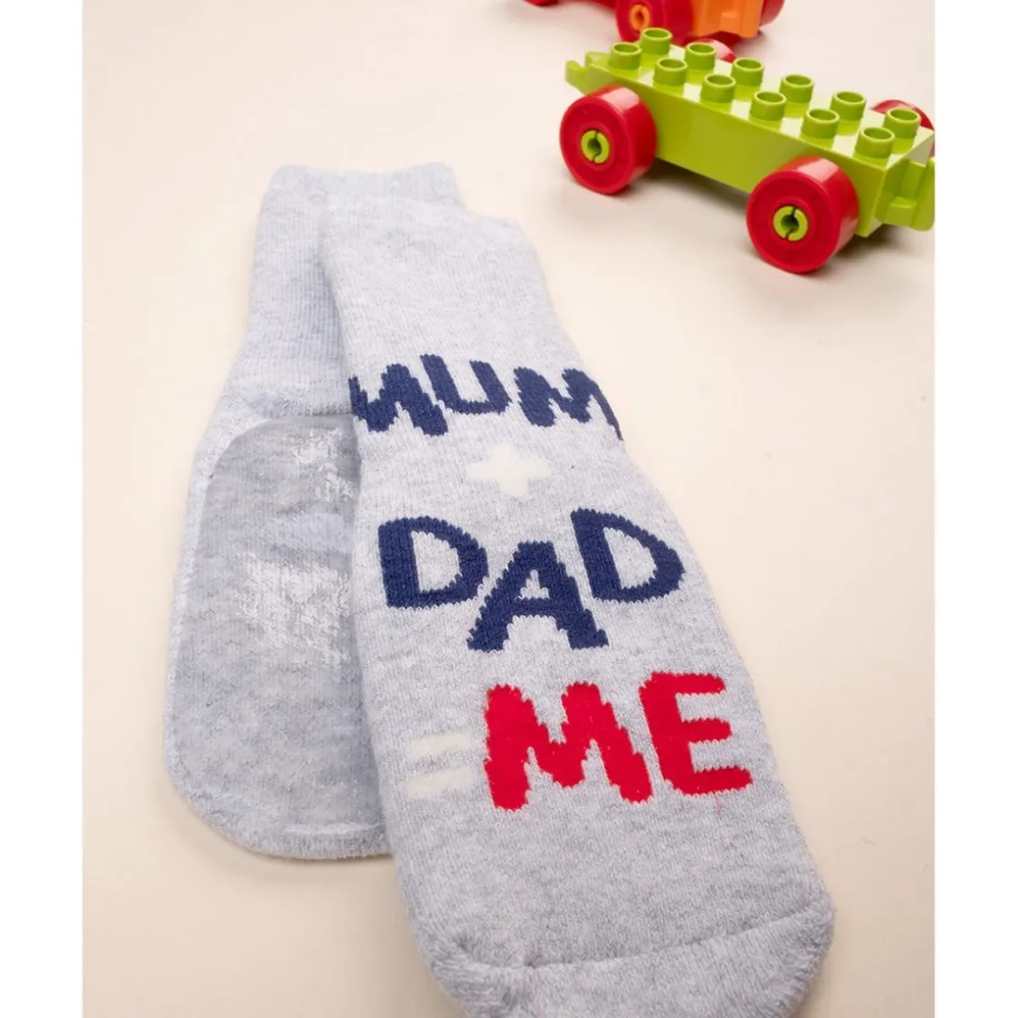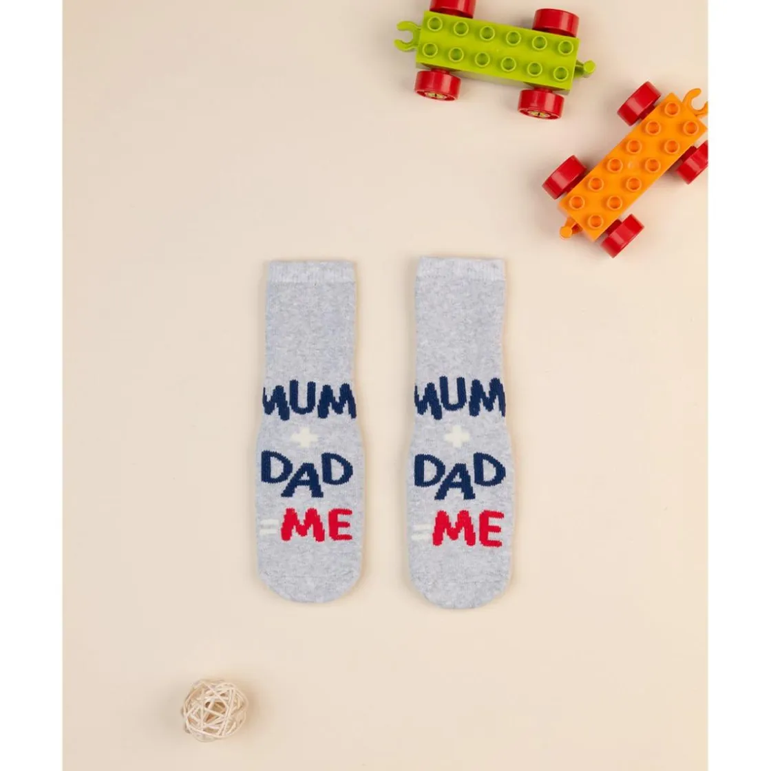 Prácticos antideslizantes para niño. La prenda se desarrolla en gris total con inscripción decorativa en la parte superior. El ajuste es holgado y garantiza cero molestias, los puntos de goma garantizan estabilidad. Accesorios no a la venta. El paquete contiene solo la prenda de vestir