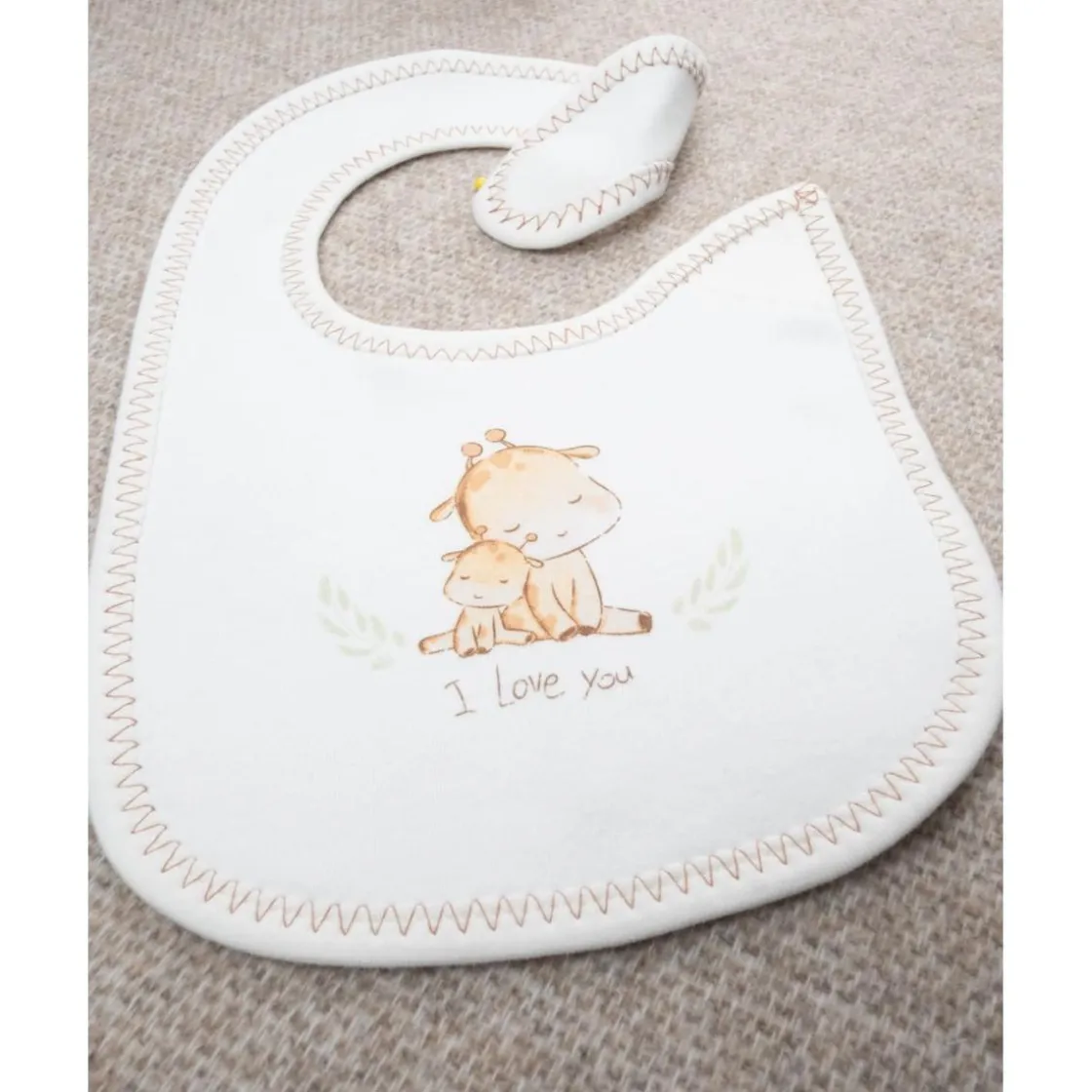 Babero básico para niño. Sobre base crema con pequeño estampado de jirafas a tono. Suave y seguro al vestir. Fabricado en algodón Oeko-Tex, testado para garantizar seguridad. Accesorios no incluidos. La caja contiene solo la prenda de ropa.