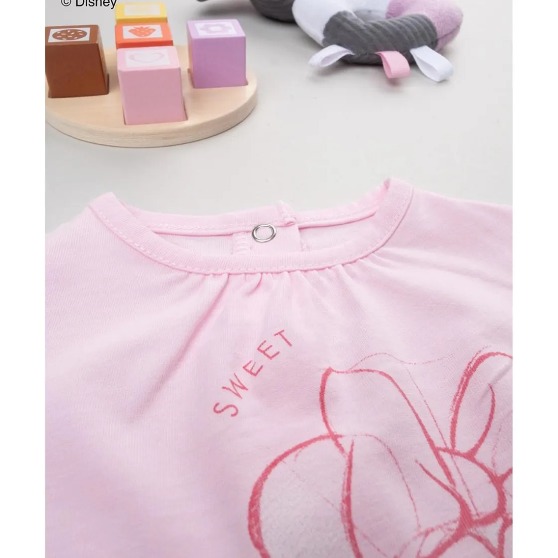 Mono integral con estampado tonal de Minnie de Disney. Broches presión en entrepierna y espalda para cambios de pañal rápidos. Tejido jersey de gramaje medio con certificación GOTS para pieles sensibles.