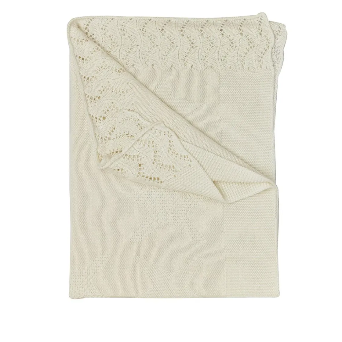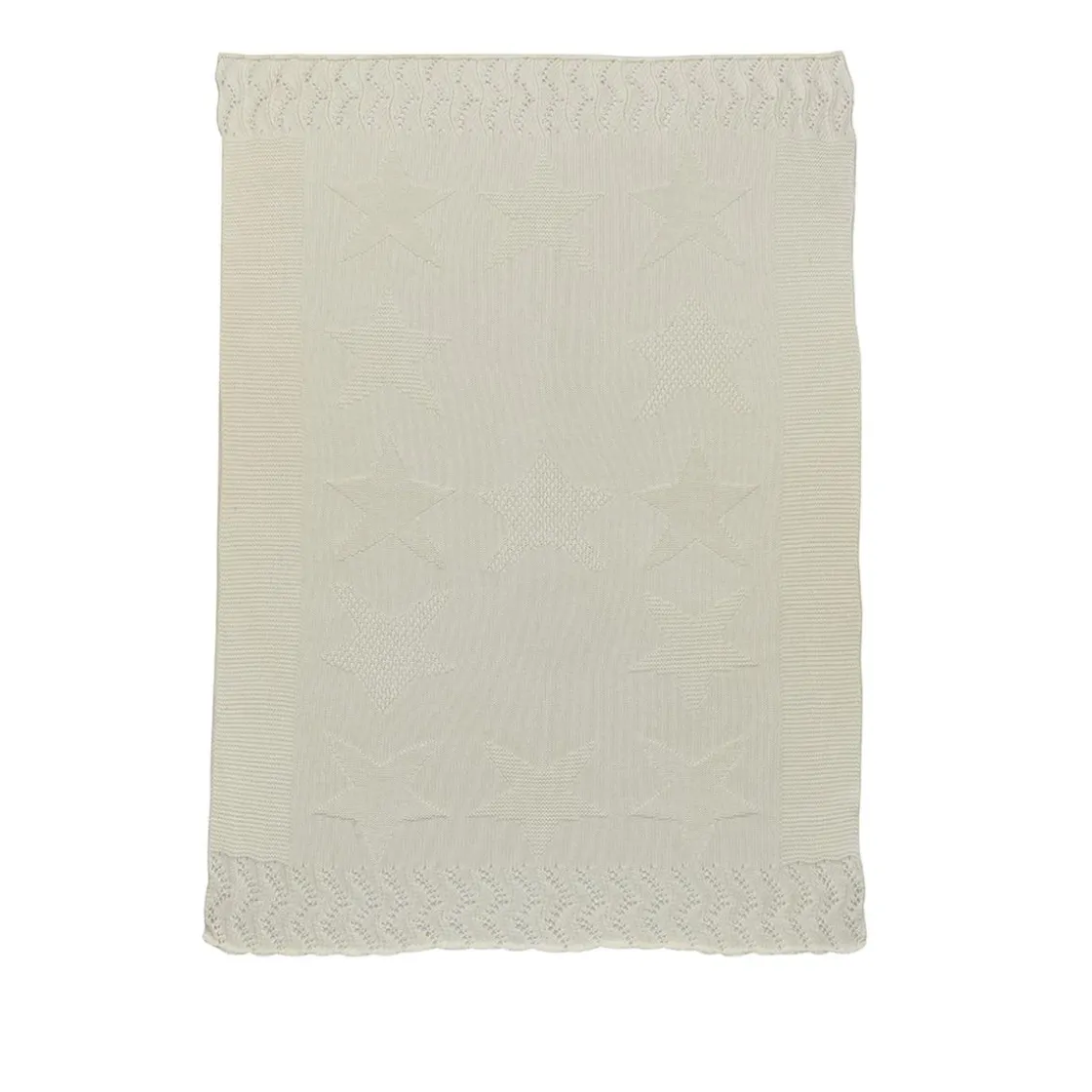 Este cálido chal de punto está confeccionado en hilo de algodón blanco y presenta un diseño tonal de grandes estrellas, aportando elegancia y confort.
