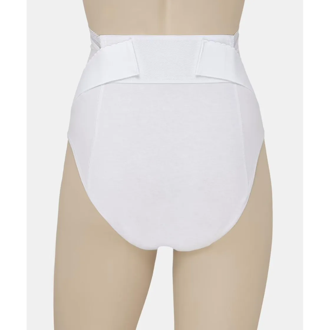 Cómoda faja de embarazo realizada en suave tela blanca que permite que la prenda se adapte perfectamente al cuerpo. Dotada de un cierre ajustable de velcro confortable.