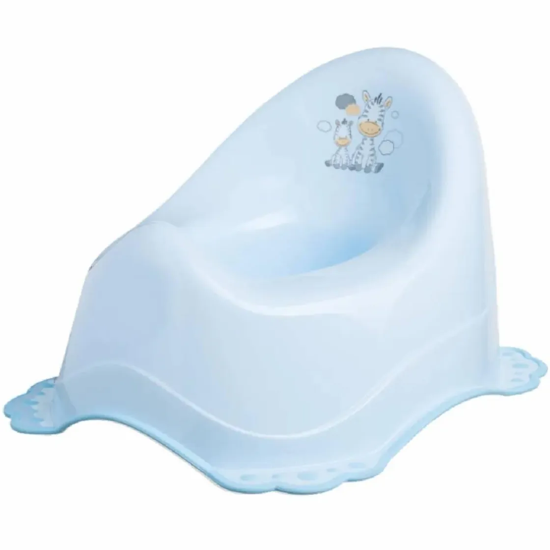 Este orinal con un simpático motivo de cebras es ideal para que el bebé aprenda a ir al baño de forma cómoda y divertida.