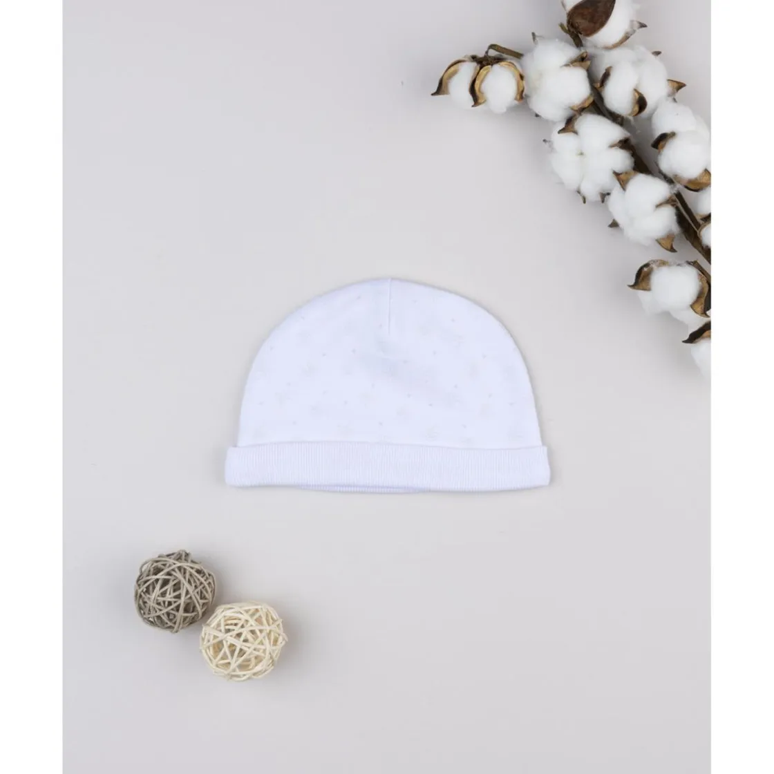 Su tejido de algodón asegura suavidad y transpirabilidad, protegiendo con delicadeza la cabeza del recién nacido y completando cualquier conjunto del día a día.