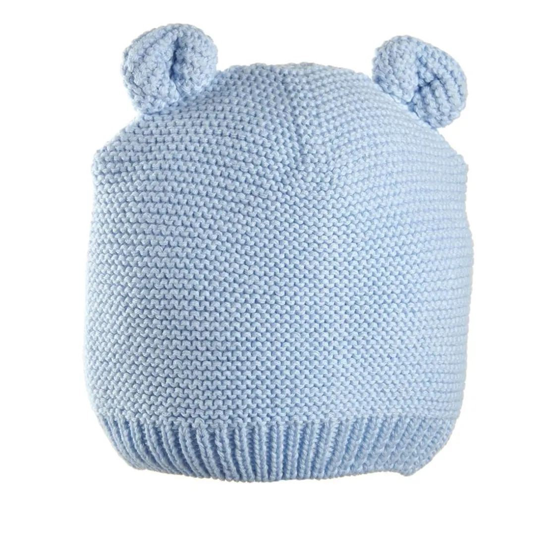 Abriga la cabecita de tu bebé con este gorro tricot azul de recién nacido, un accesorio suave y encantador. El diseño incluye unas divertidas orejitas tono sobre tono que añaden un detalle tierno y simpático. Su ajuste es cómodo y práctico para proteger en los días más frescos.