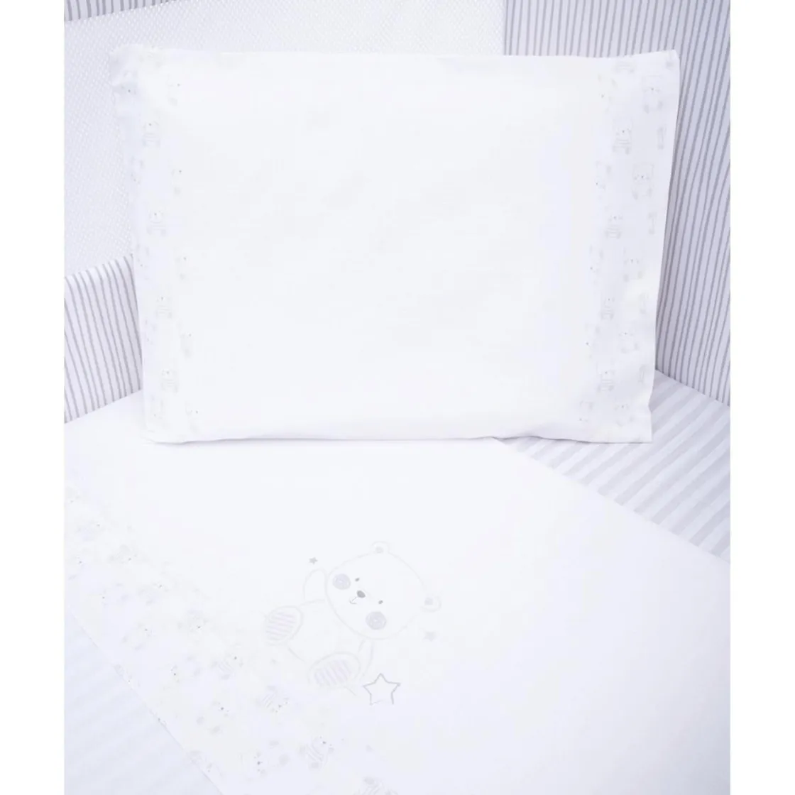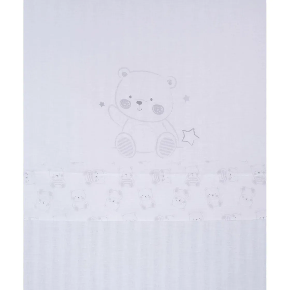 El diseño destaca por una simpática impresión de un osito que se repite en las delicadas borduras, aportando un toque de dulzura y estilo. Este set es perfecto para garantizar el confort de tu bebé, proporcionando suavidad y transpirabilidad en cada descanso.