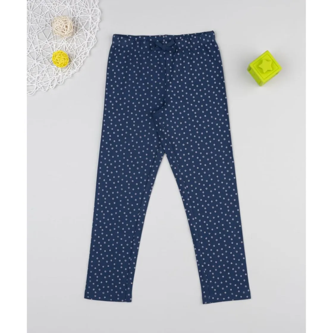 Bonitos leggings en azul con delicado estampado allover a contraste. Con cintura elástica para un ajuste suave y confortable. Combinan con múltiples estilos.