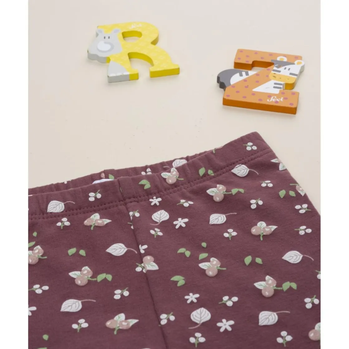 Encantadores leggings de niña en color rosa antiguo con estampado de flores pequeñas. Su tejido elástico y cómodo permite libertad de movimiento, ideal para combinar con camisetas o vestidos.