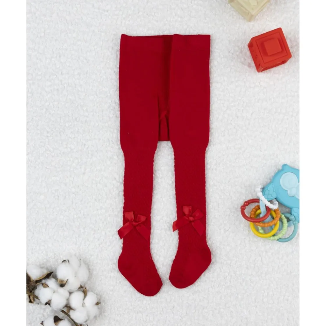 Leotardo para niña en rojo liso con lazo aplicado tono sobre tono, ideal para las fiestas de invierno. El punto elástico ofrece ajuste cómodo y abrigo sin renunciar a la libertad de movimiento. Un accesorio fácil de combinar con vestidos y faldas, que aporta un toque elegante a los looks navideños y de temporada.