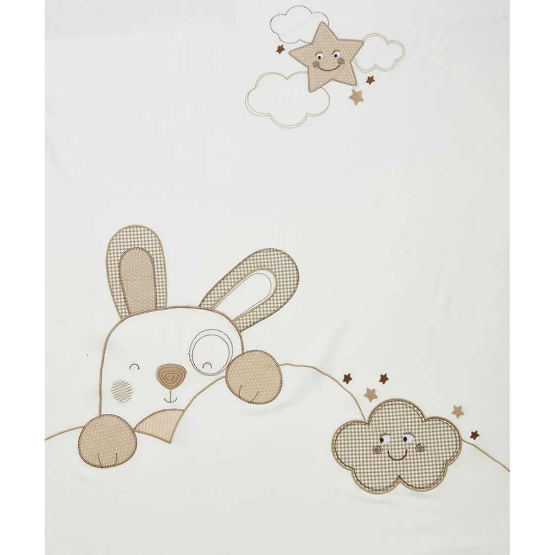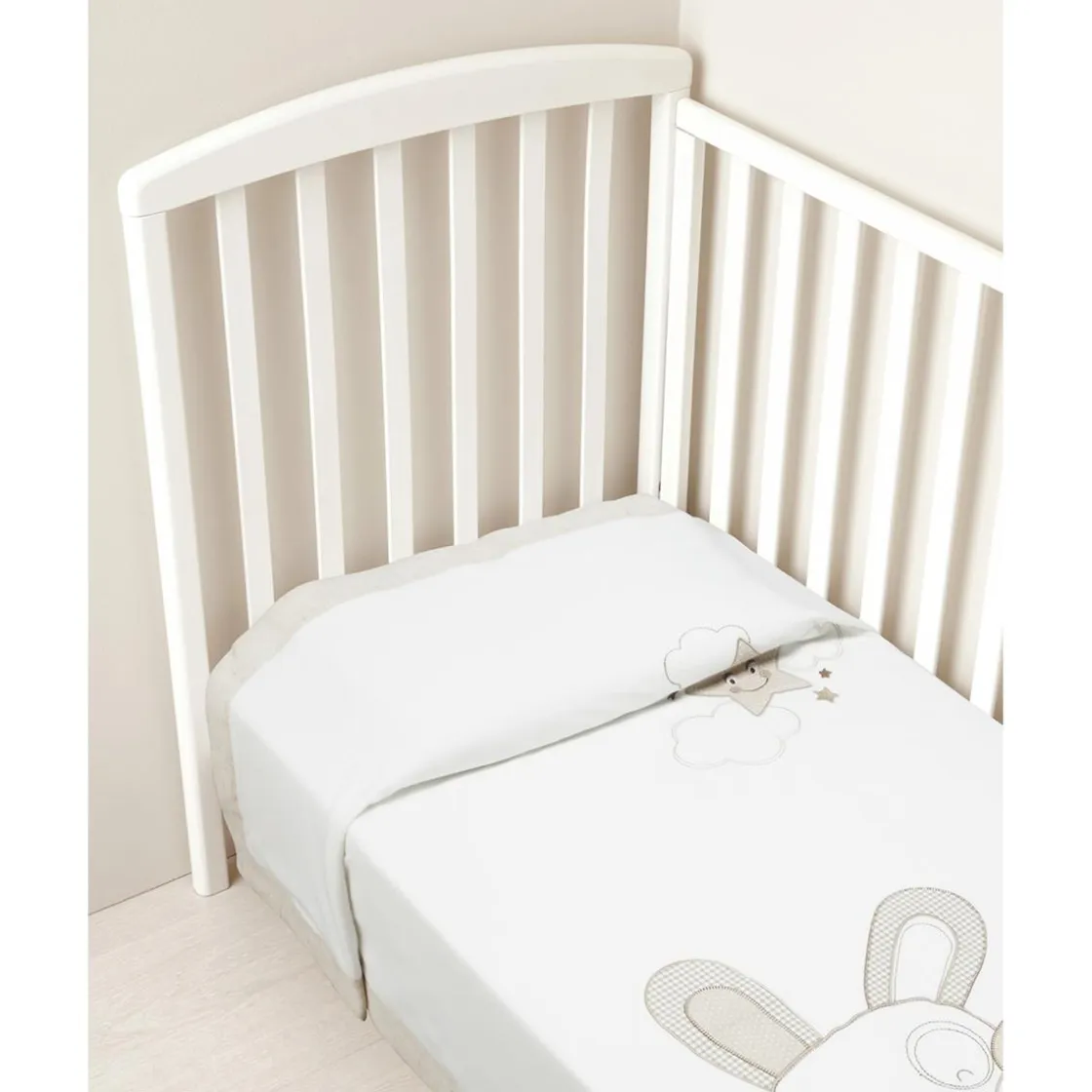 Esta cálida manta de cuna está confeccionada en suave algodón con detalles en lino, proporcionando abrigo y confort al bebé.