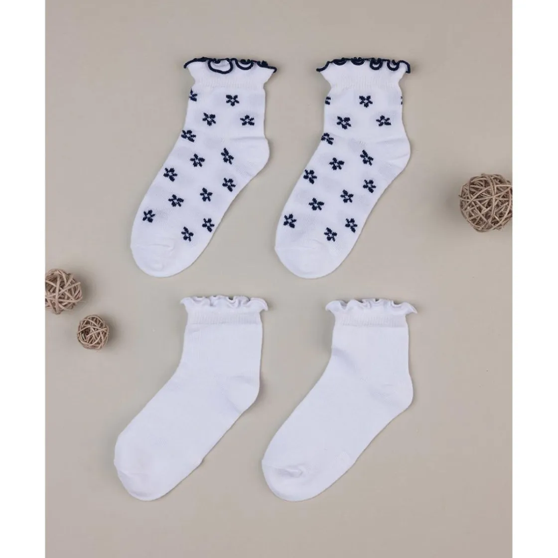 Tierno pack de 2 calcetines cortos para niña. Las prendas se desarrollan sobre una base blanca con detalles en azul noche y tobillo fruncido. La vestimenta es suave y garantiza cero molestias. Accesorios no a la venta. El paquete contiene solo la prenda de vestir.