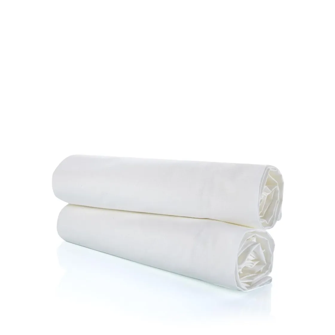 Este pack de dos sábanas bajeras blancas ofrece la máxima suavidad y frescura, gracias a su tejido de algodón 100%. Un imprescindible en la ropa de cama del bebé.