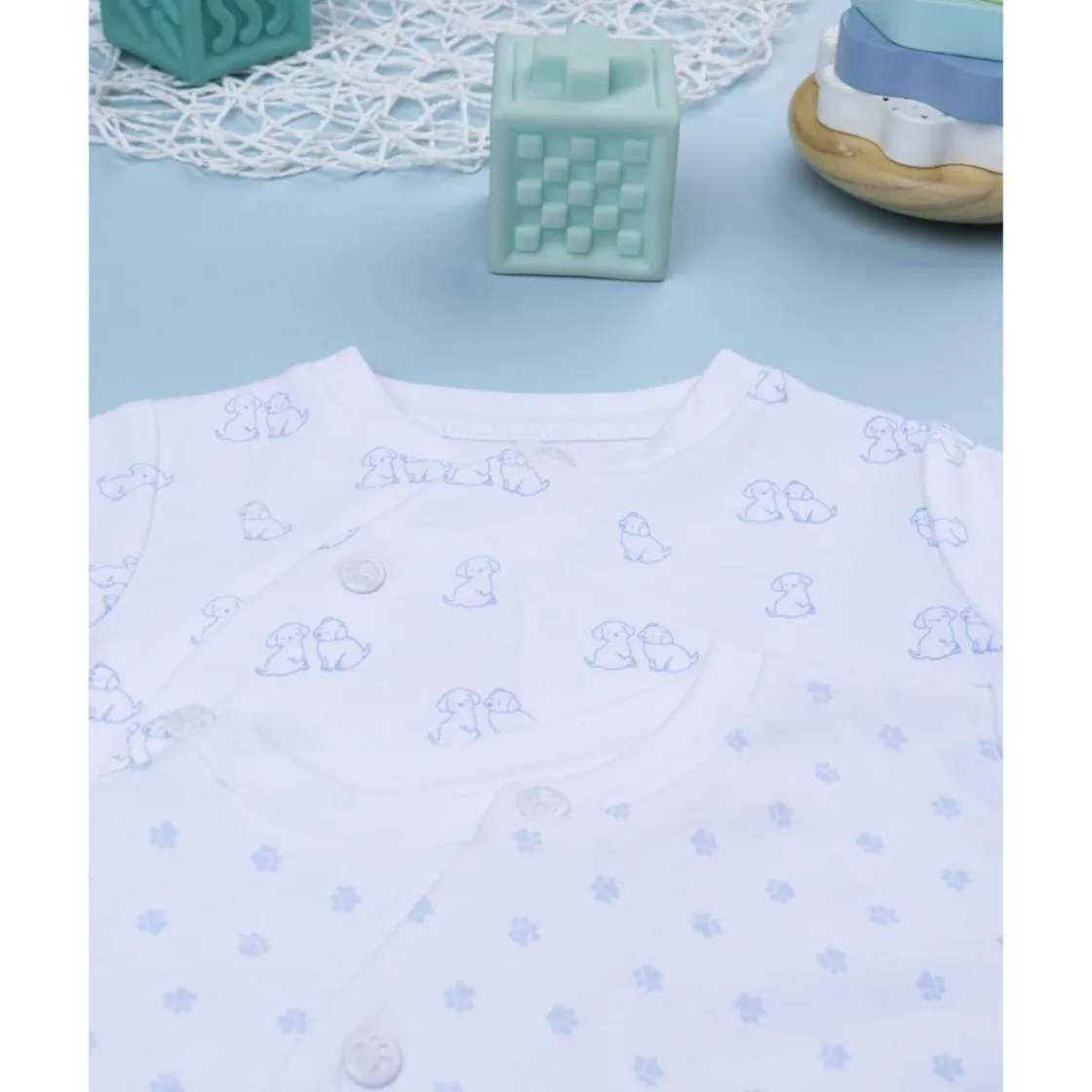 Su cierre frontal con botones automáticos y apertura en la entrepierna permiten vestir y cambiar al bebé con facilidad. Confeccionados en algodón certificado Oeko-Tex, ofrecen suavidad, comodidad y seguridad al contacto con la piel.