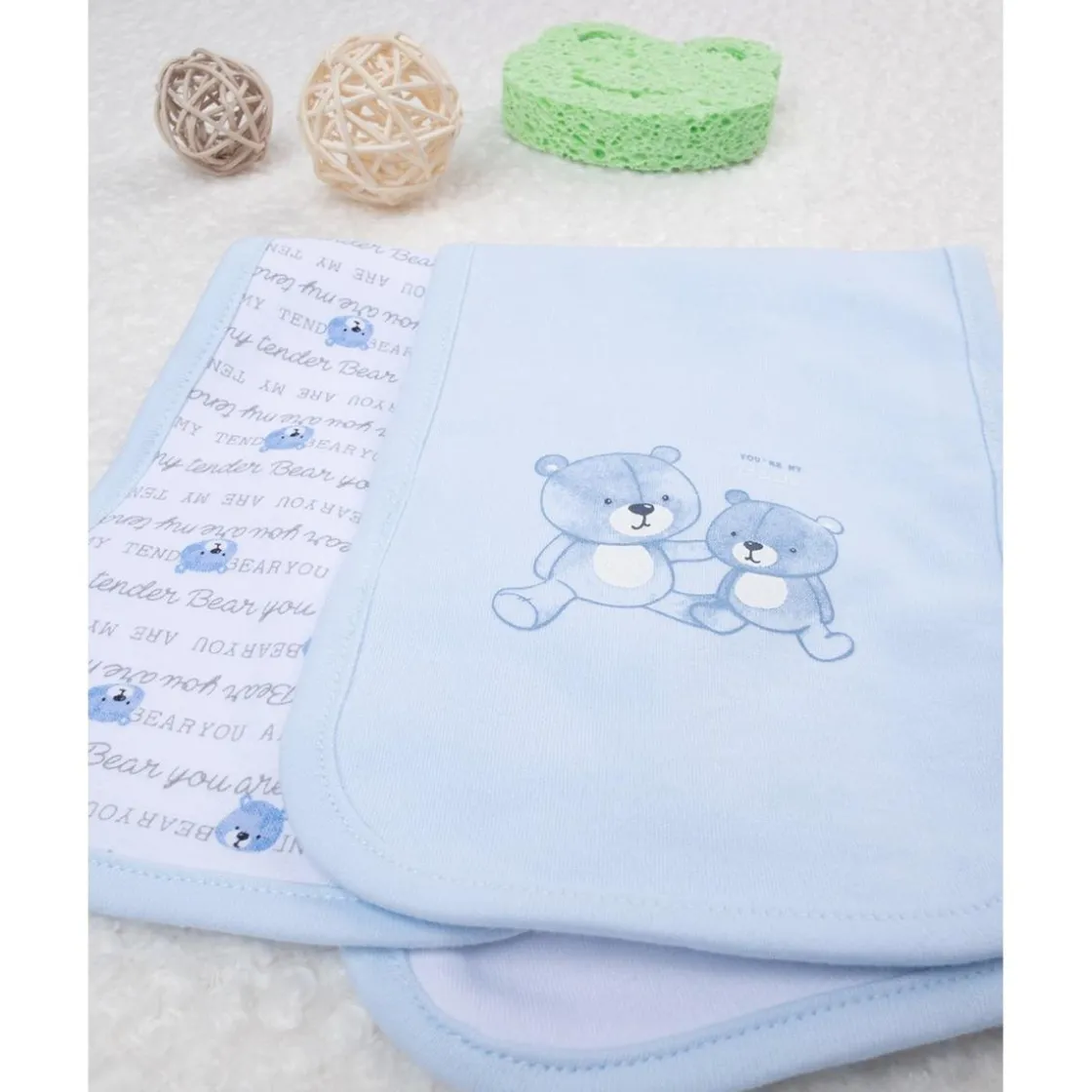 Este práctico paño antiregurgitación está elaborado en algodón azul con decoraciones a tono. Diseñado para proteger la ropa de la mamá de posibles regurgitaciones del bebé, es un accesorio esencial durante la lactancia.