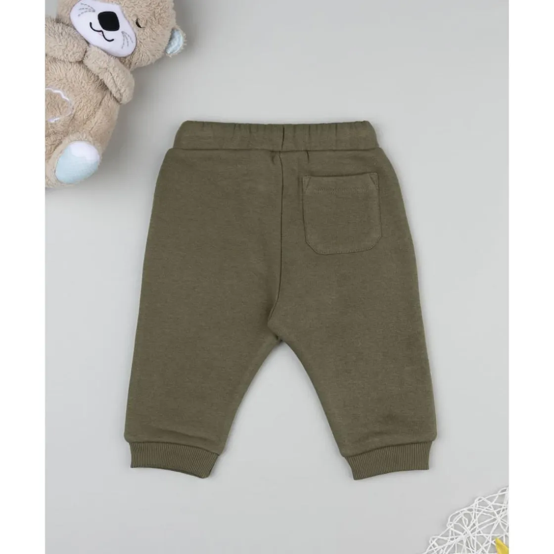 Casual y cómodo, este pantalón felpado para niño se presenta en color verde militar con un pequeño estampado coordinado que aporta un toque divertido. Su diseño incluye cintura ajustable mediante cordón, ofreciendo libertad de movimiento y confort durante todo el día. Ideal para combinar con camisetas y sudaderas, este pantalón es perfecto para ocasiones casuales y para que el niño disfrute jugando o en el colegio con total comodidad.
