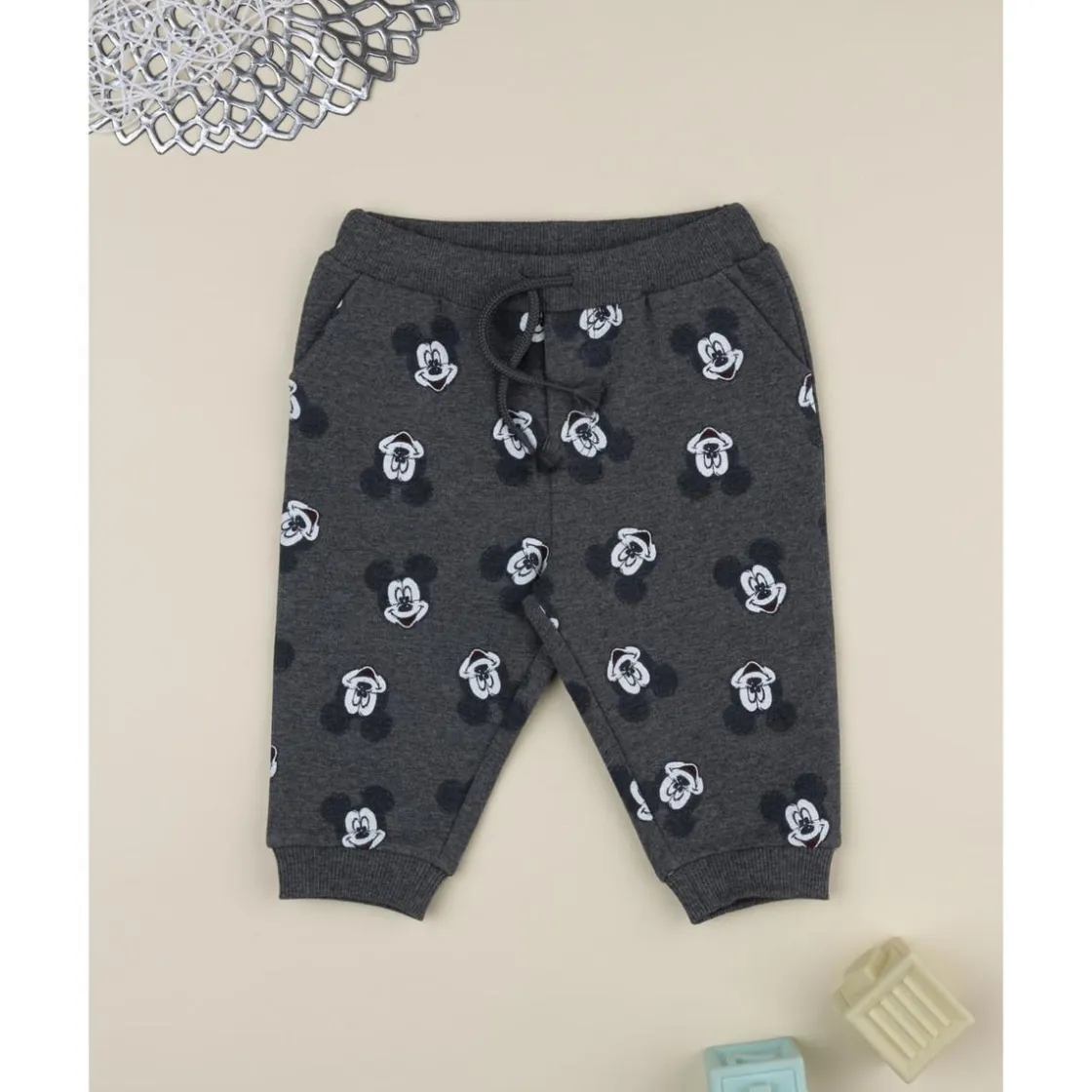 Pantalón gris de niño en felpa con estampado de Mickey Mouse