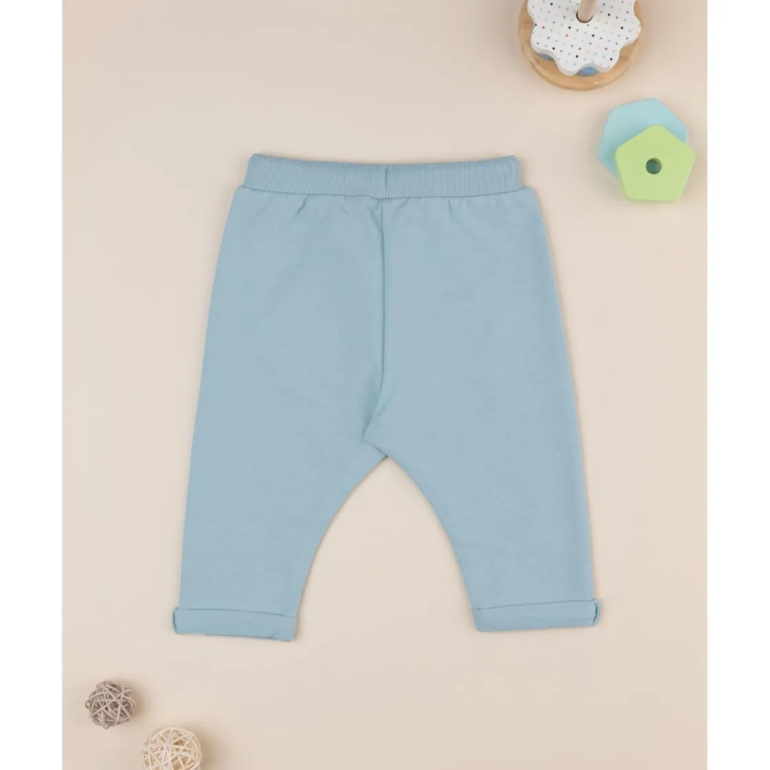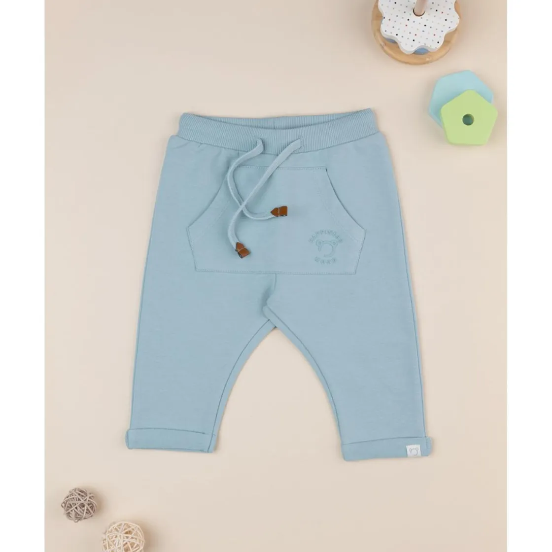 Pantalones casual de felpa para niño en azul total con bolsillo canguro en el frente. Ajuste cómodo y regulable gracias al cordón en la cintura. Perfectos para ocasiones casuales. Solo prenda incluida.