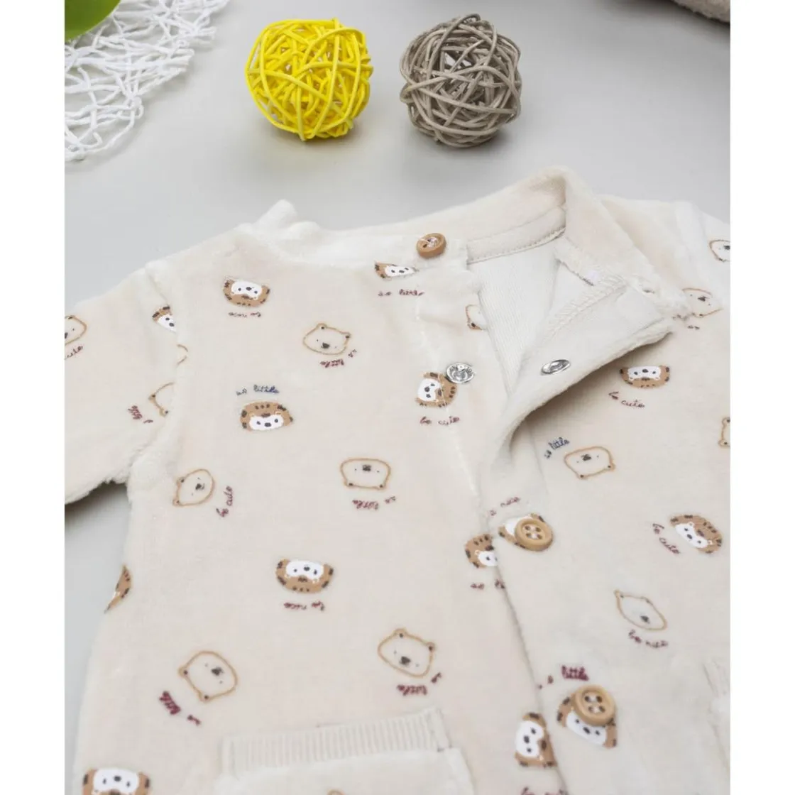 Pelele de terciopelo beige con estampado animalitos