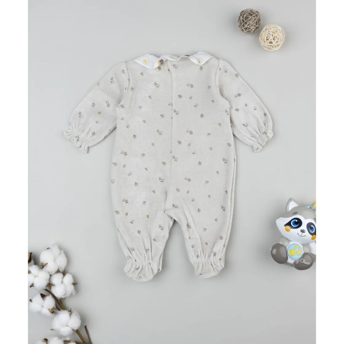Este pijama de bebé de manga larga está confeccionado en felpa aterciopelada, ideal para mantener a la recién nacida abrigada y cómoda en sus primeros meses. Su diseño en marrón claro con bordados allover y cuello blanco bordado aporta un aire elegante y delicado. Incorpora pies cerrados y puños fruncidos para mayor ajuste y suavidad.