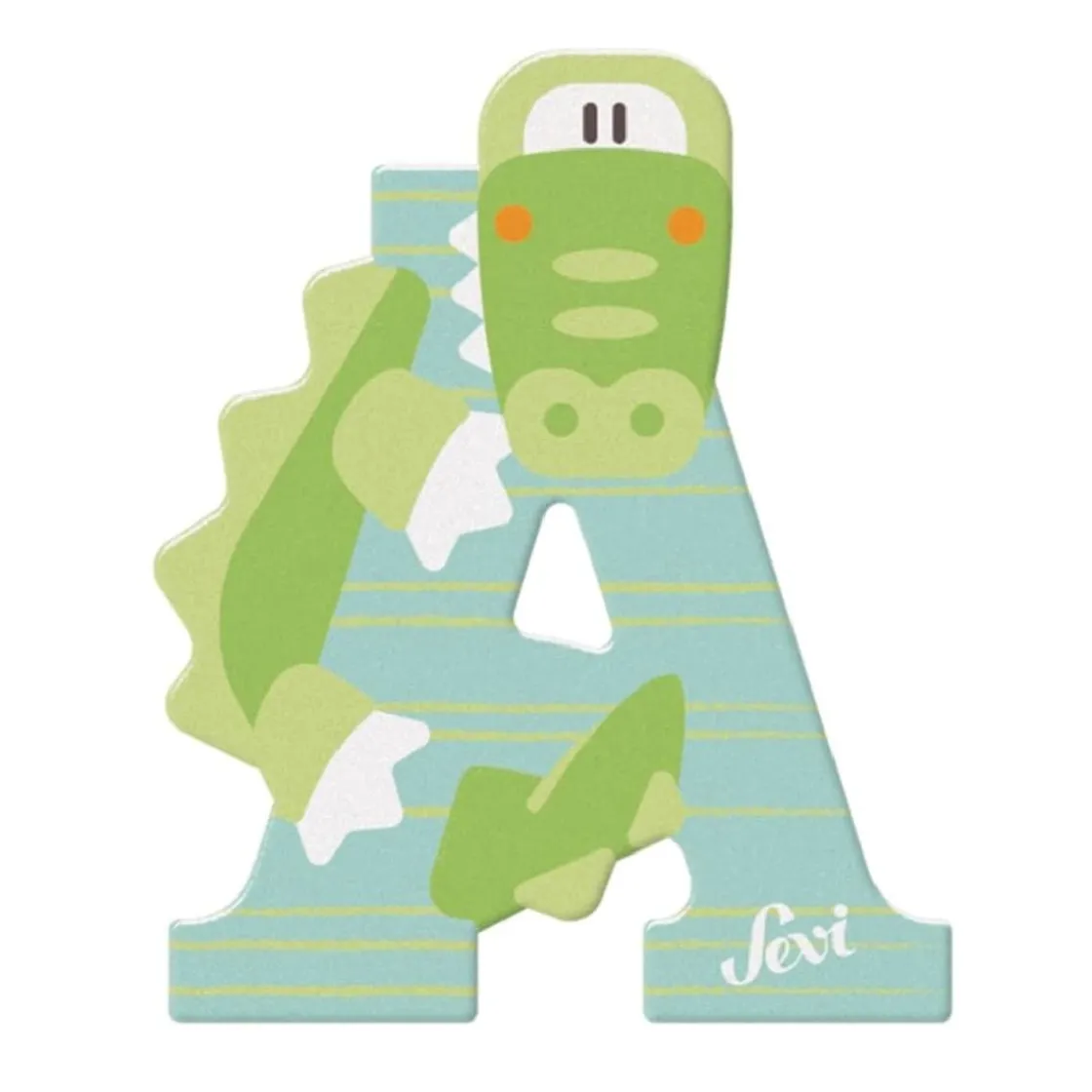 Esta letra está elaborada en madera ligera y pintada a mano con colores vivos, captando la atención de los pequeños. Cada letra representa la inicial de un animal, en este caso, la ‘A’ de ‘Alligator’ (Caimán), introduciendo a los niños en el mundo animal mientras aprenden a reconocer letras y sonidos.