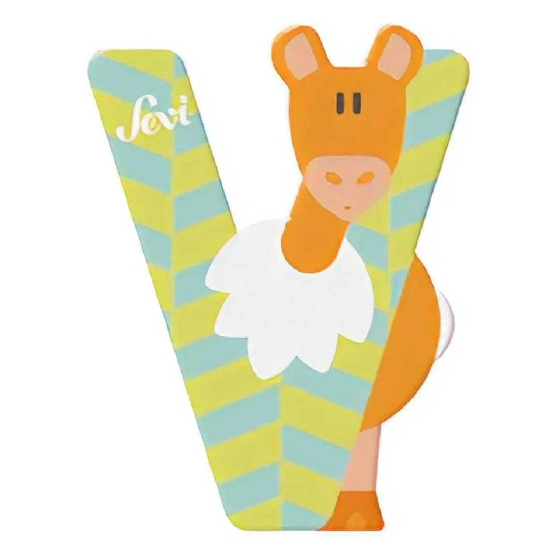 La Letra V de madera de Sevi trae consigo una vicuña muy simpática.