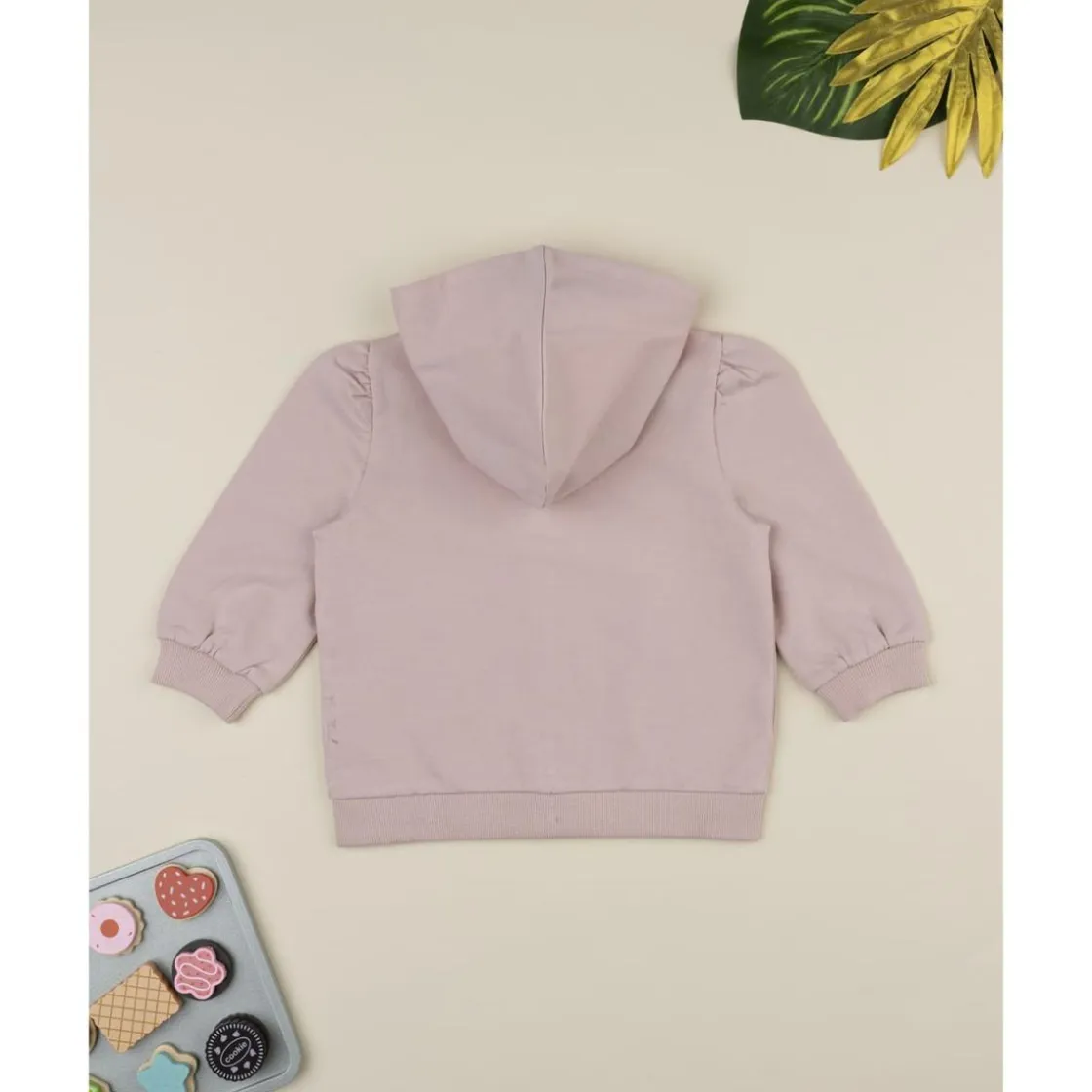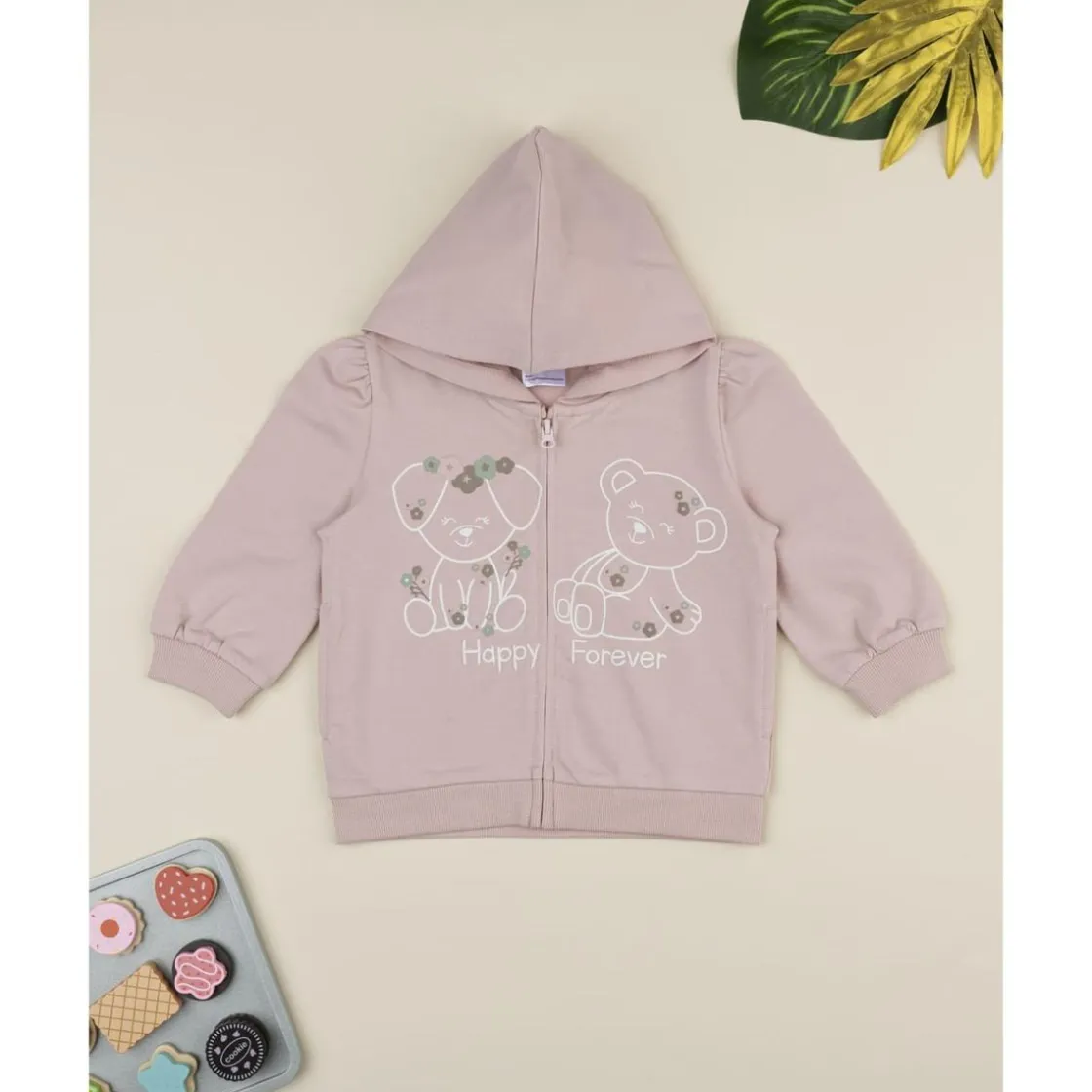 La felpa rosa con capucha y estampado de osos es una prenda cómoda y encantadora para el día a día. Su base en tono rosa antiguo y el dibujo de pequeños ositos blancos le dan un aire dulce y divertido. Confeccionada en algodón suave 100%, ofrece una textura cálida y agradable al contacto con la piel, perfecta para los días más frescos.