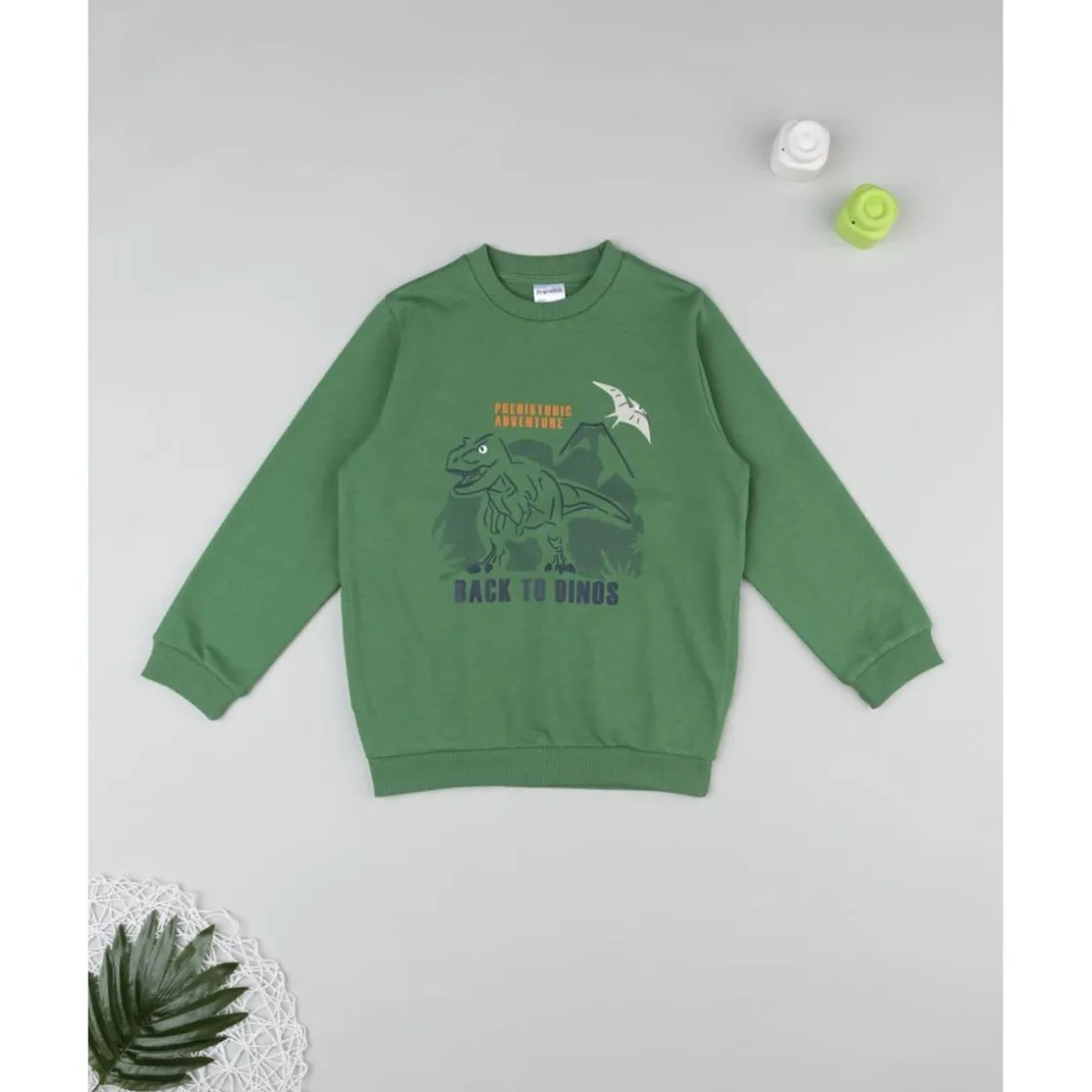 Esta sudadera ligera para niño es perfecta para mantener a tu pequeño cómodo y a la moda. Confeccionada en color verde, la sudadera presenta un estampado en relieve de temática de dinosaurios en el frontal. La prenda tiene un ajuste cómodo y una fit regular, ideal para un look casual y cómodo.