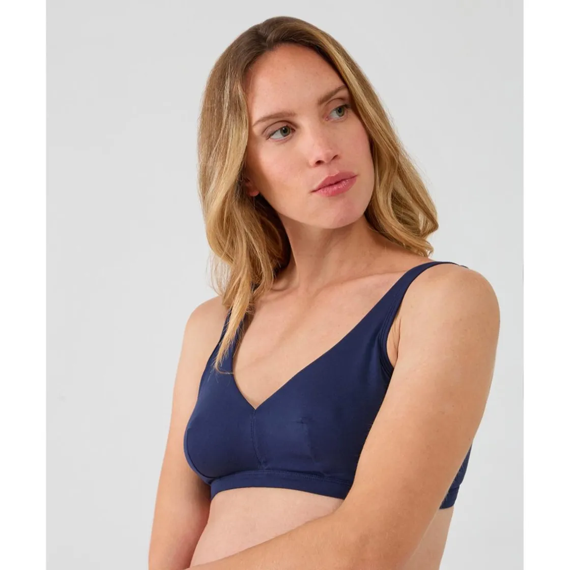 Sujetador premamá de jersey de algodón. La banda elástica debajo del busto garantiza el máximo soporte y un confort óptimo. Con tirantes suaves y ajustables, se adapta perfectamente a los cambios de talla y forma del busto durante las etapas del embarazo.