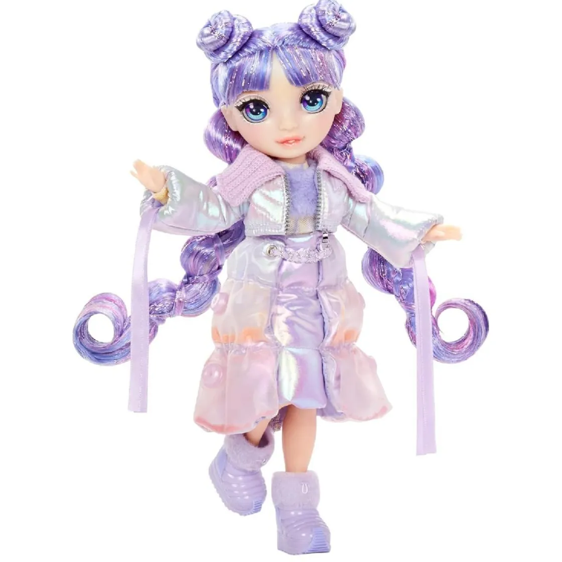 Rainbow High – Violet Willow – Muñeca Winter Wonderland, una muñeca de 28 cm con nieve mágica en su vestido que se hincha con el agua.