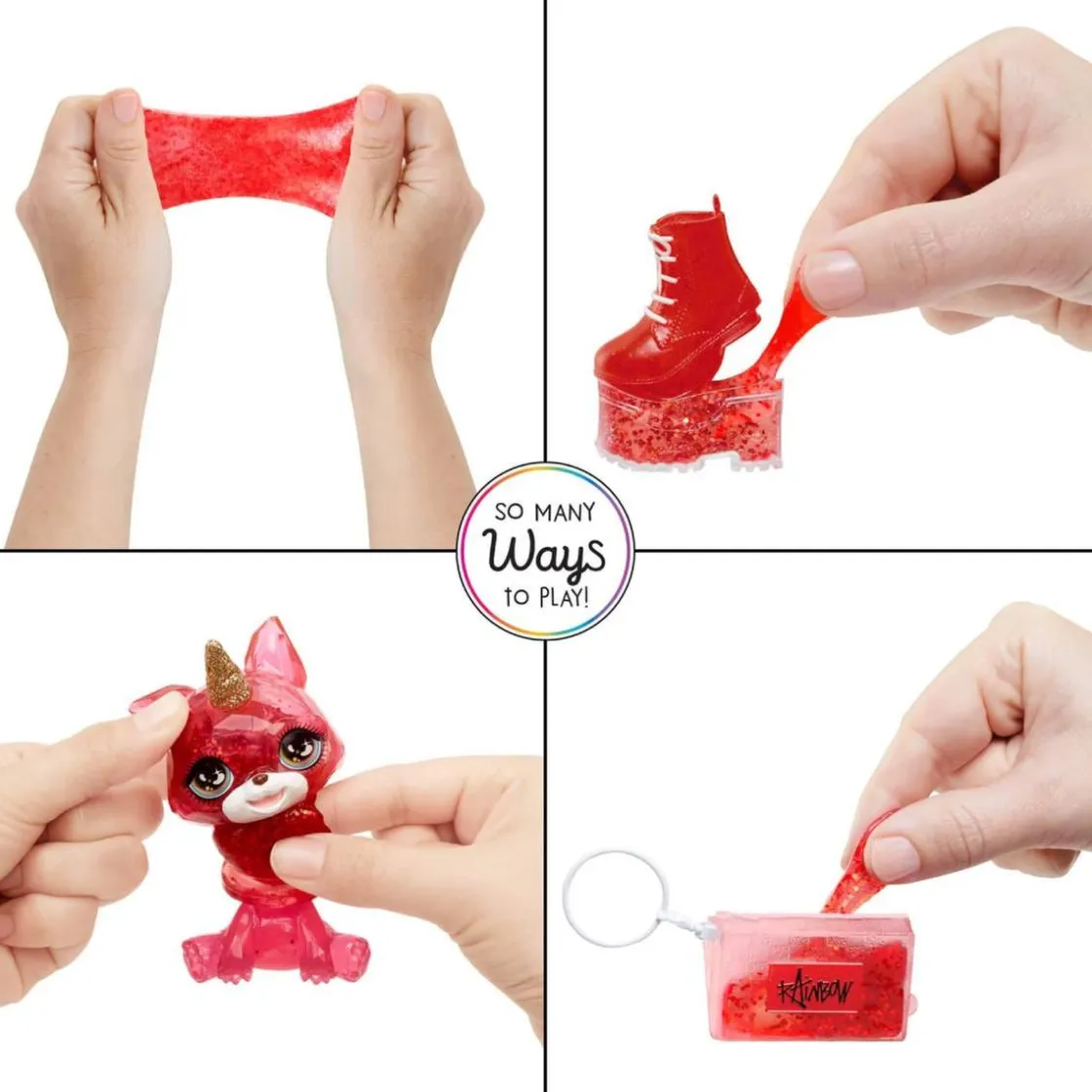 Ruby trae un adorable zorro mágico como mascota, Razzberry, que tiene un cuerno brillante. En el paquete encontrarás slime prefabricado, al que puedes agregar brillo y llenar tu mascota, bolso o zapatos con slime brillante para que cambien de color. Se puede utilizar muchas veces y es muy fácil de limpiar.