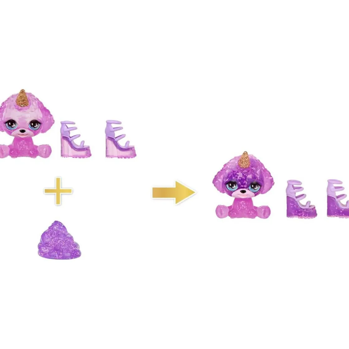 Violet trae un adorable caniche mágico como mascota, Periwinkle, que tiene un cuerno brillante. En el paquete encontrarás slime prefabricado, al que puedes agregar brillo y llenar tu mascota, bolso o zapatos con slime brillante para que cambien de color. Se puede utilizar muchas veces y es muy fácil de limpiar.