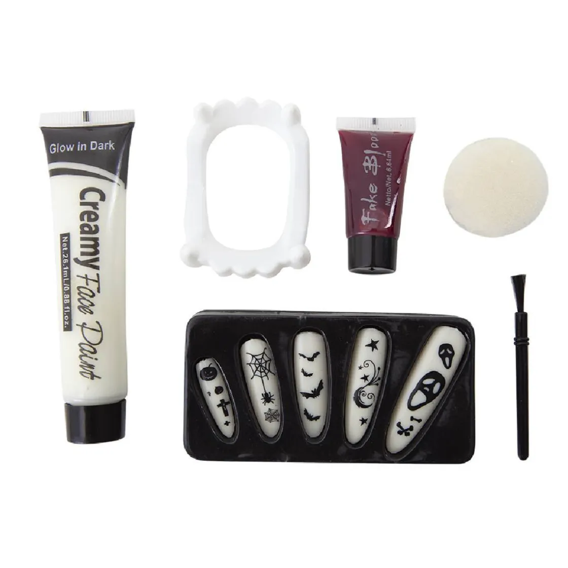 Blíster Vampiro Brilla en la Oscuridad, un set de maquillaje vampírico para un disfraz increíble.