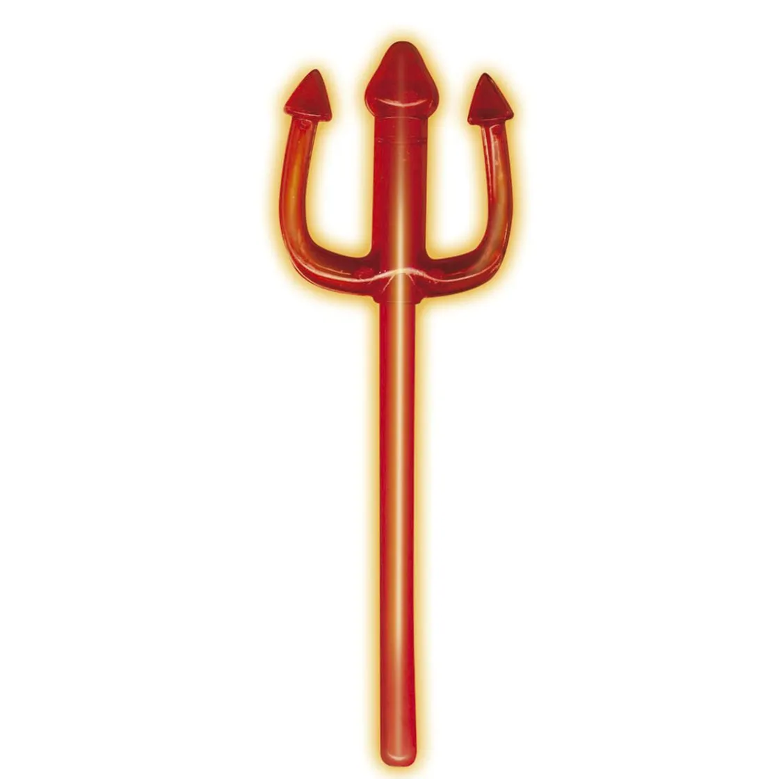 Tridente Diabólico Luminoso, un accesorio de disfraz de PVC ideal para divertidos momentos de miedo como en Halloween. Se ilumina. Funciona SIN pilas. Edad recomendada: +14 años.