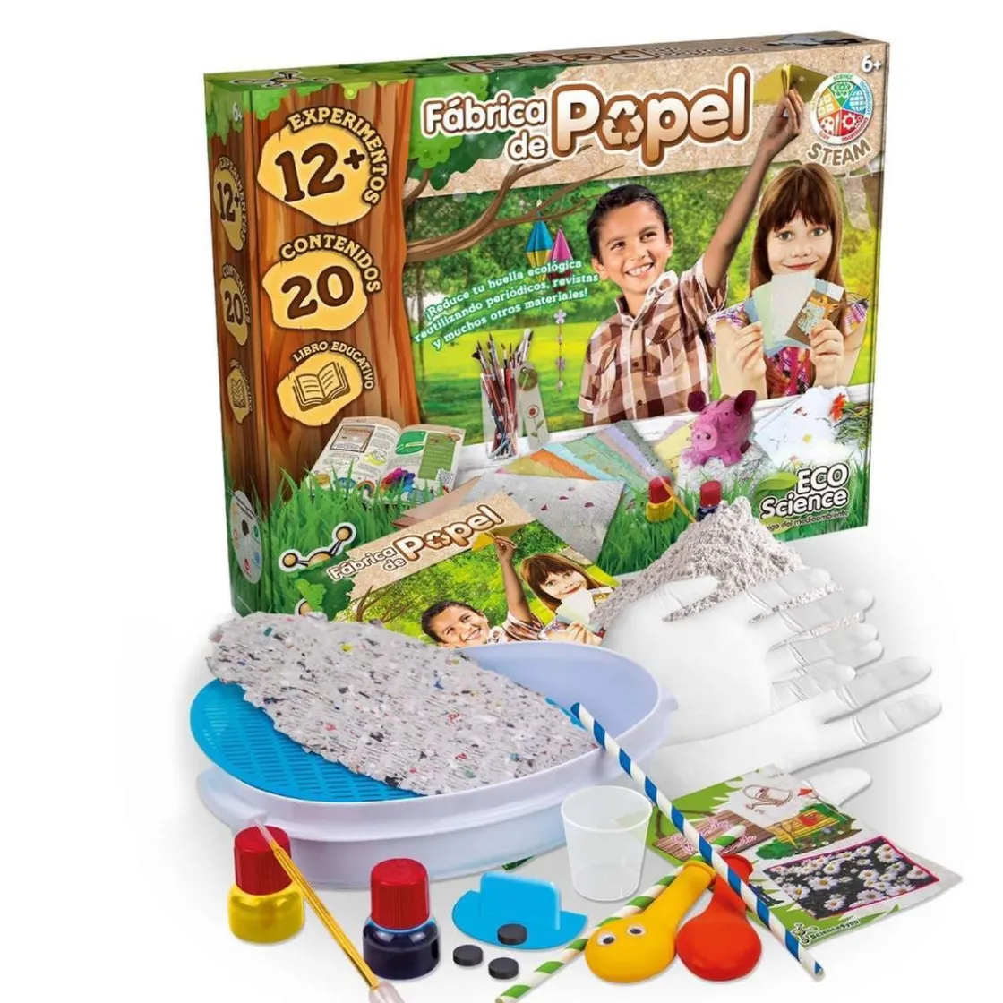 Science4you – Fábrica de Papel, una fábrica de papel con la que podrás crear imanes increíbles con pasta de papel, marcadores para libros o papeles de texturas e colores diferentes.