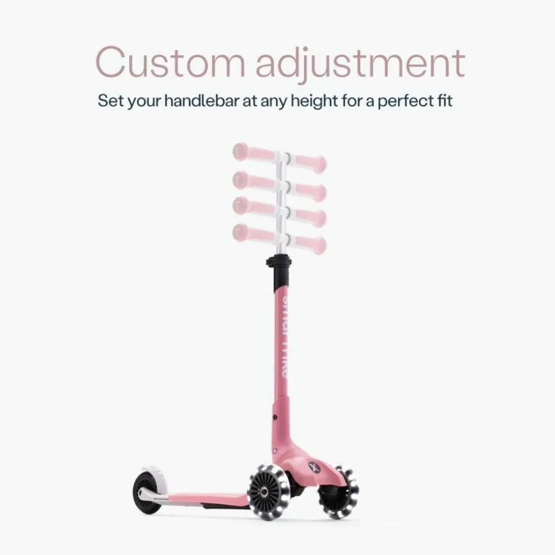 El patinete evolutivo SmarTrike Xtend Mini+ Rose Pink es la elección perfecta para niños de 2 a 9 años que buscan un patinete que crezca con ellos. Su base extensible en tres posiciones y el manillar regulable en altura permiten ajustar el patinete a medida que el niño crece. Las ruedas LED proporcionan un toque de diversión y seguridad adicional, iluminando el camino durante los paseos. El sistema de plegado rápido con solo presionar un botón facilita su transporte y almacenamiento. Con un peso de 2,7 kg, es fácil de manejar para los pequeños. Disponible en colores azul, rosa y menta.