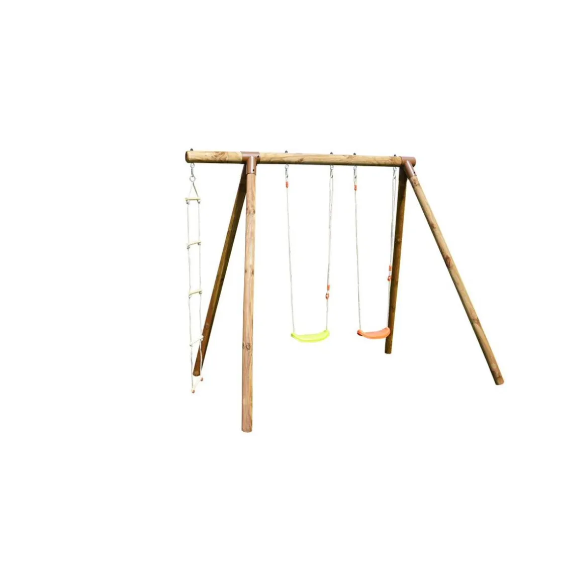 Incluye anclajes para el suelo, 2 asientos individuales, 1 escalera de cuerda con protección antipellizcos y anillas reforzadas.