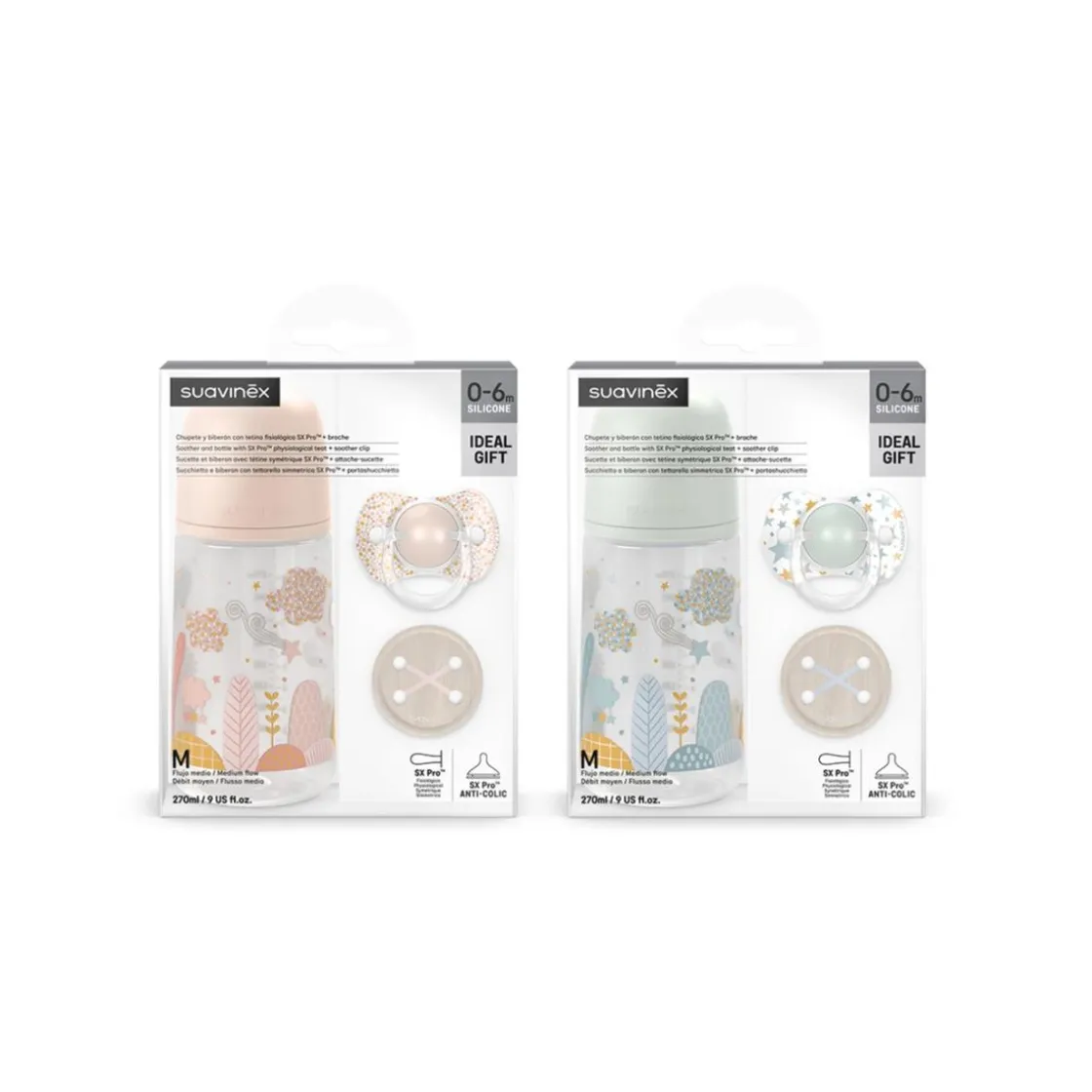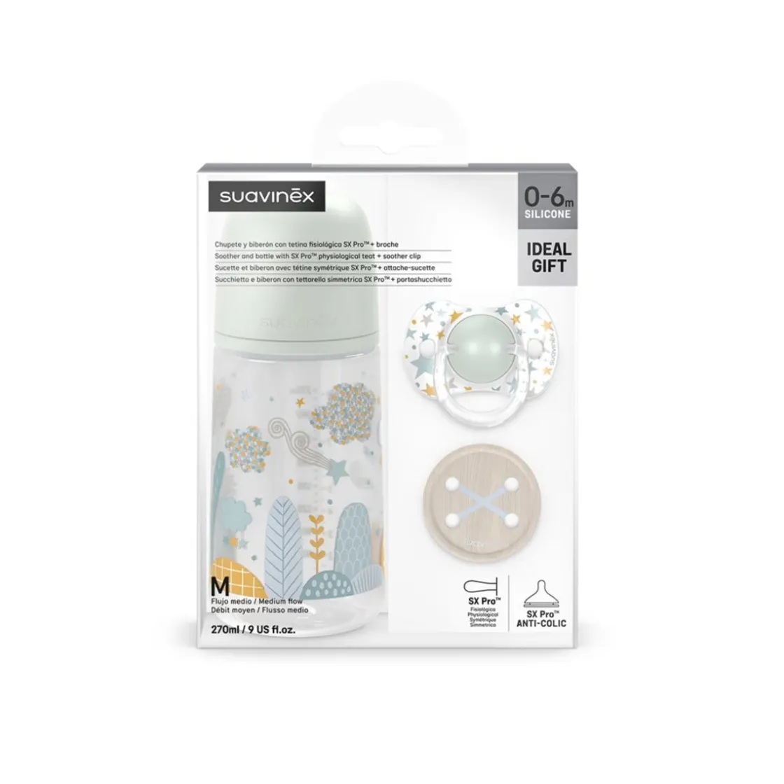 - Biberón 270 ml con tetina simétrica de silicona SX Pro, Flujo Medio.