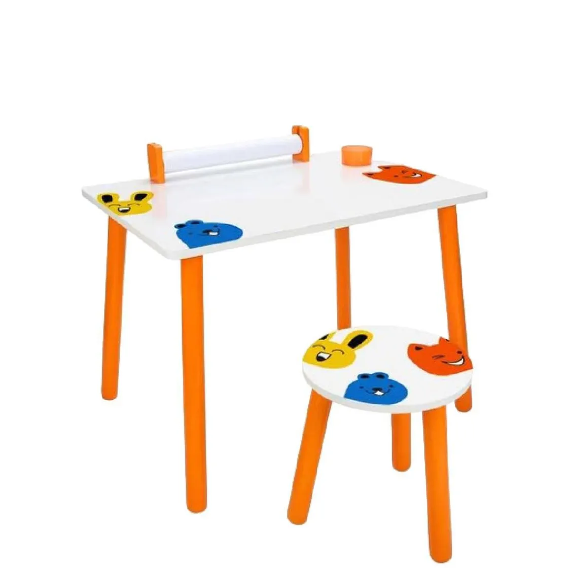 El escritorio tiene una superficie blanca borrable, por lo que los pequeños artistas pueden dibujar sobre él y borrar sus dibujos para hacer otros. También hay un pequeño dispensador de papel al final del escritorio para que los niños puedan dibujar sin parar. También se incluye una pequeña taza para que los artistas guarden todos sus accesorios de dibujo.