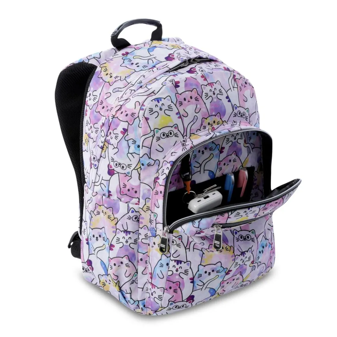 Hecha con materiales resistentes y duraderos, esta mochila está diseñada para soportar el uso diario en la escuela. Las correas ajustables aseguran un ajuste cómodo y adecuado para los niños, mientras que el material fácil de limpiar mantiene la mochila en perfectas condiciones durante mucho tiempo. Su diseño alegre y juvenil la convierte en la opción perfecta para los más pequeños.