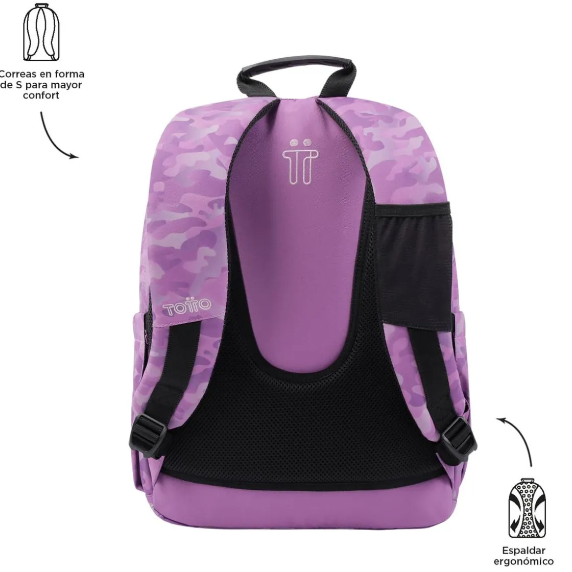 - Correas ajustables en forma de S para mantener la comodidad en tu espalda.