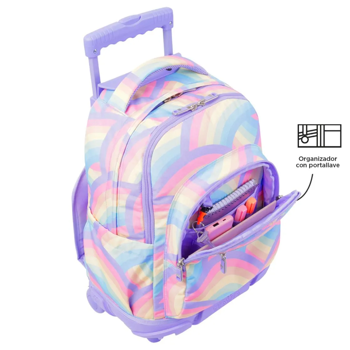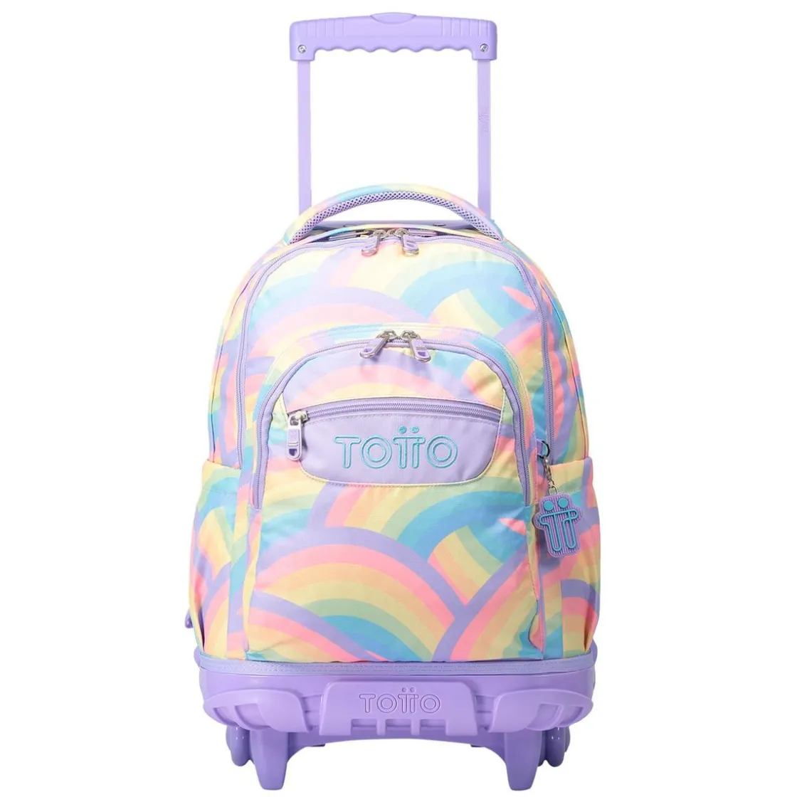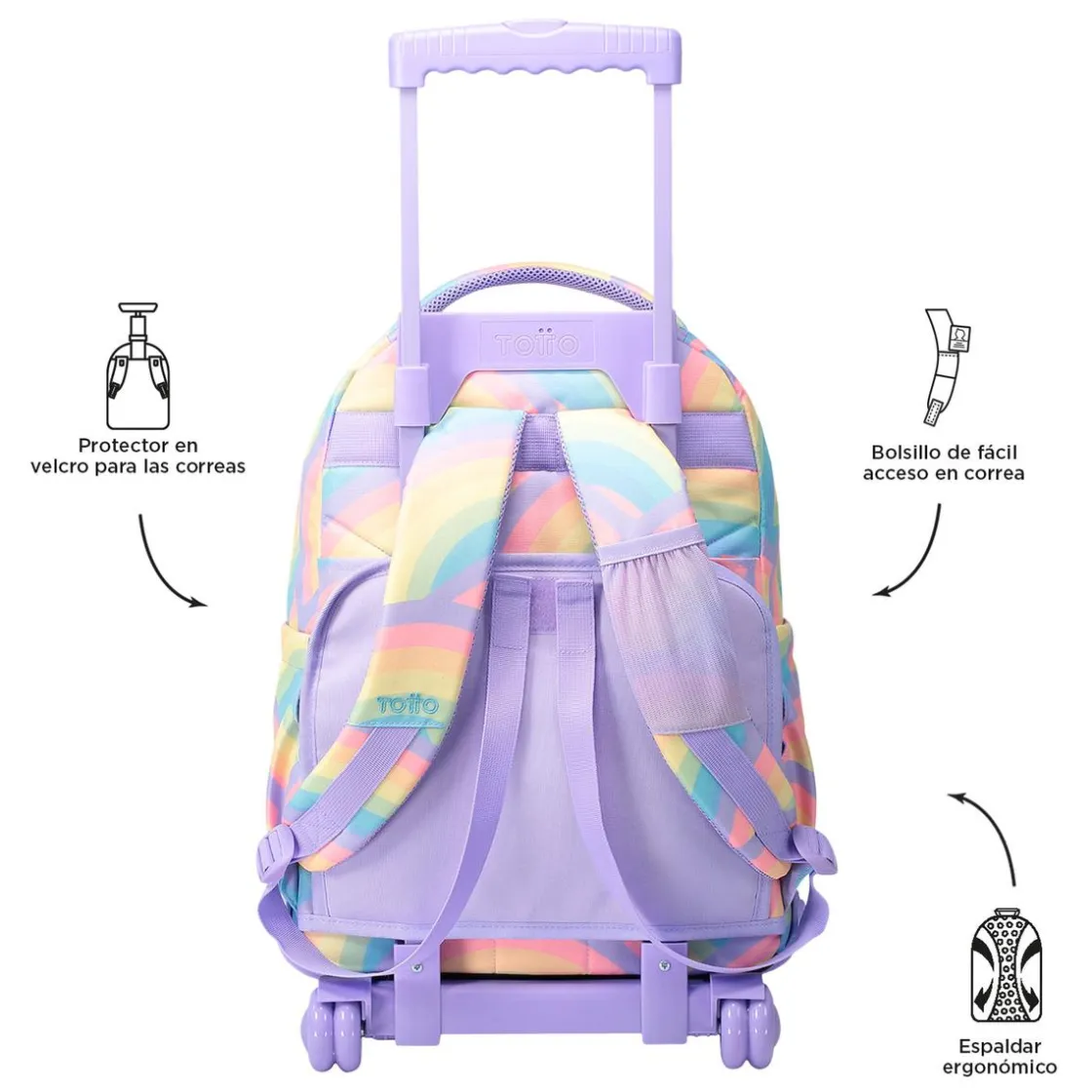 Totto – Mochila escolar con ruedas arcoíris Renglones, una mochila fabricada con materiales muy resistentes de la colección Renglones.
