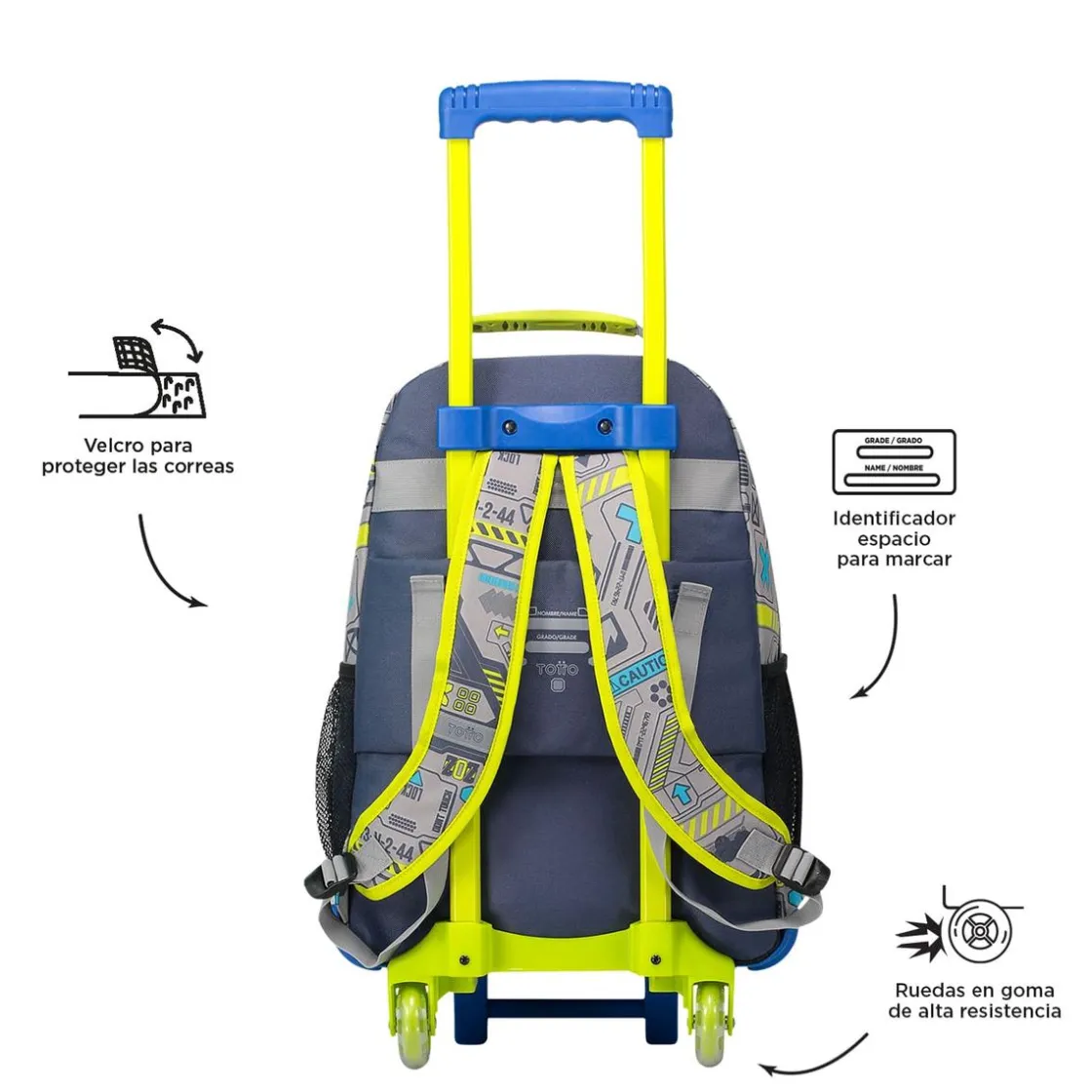 Totto – Mochila escolar con ruedas grande Monark, una mochila inspirada en los videojuegos de la colección Monark.