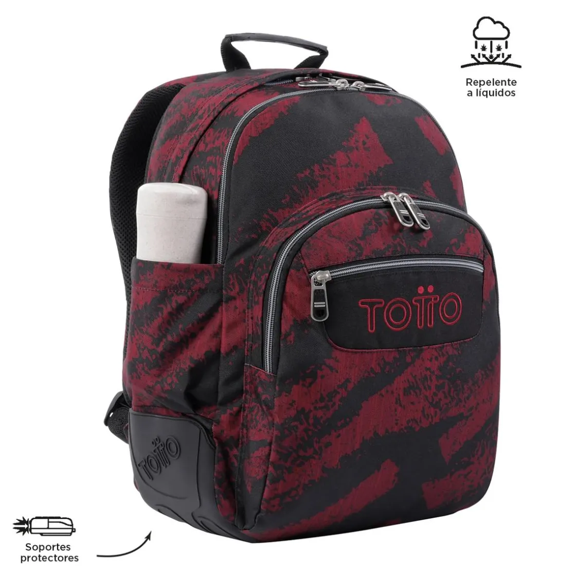 - Cobertura de PVC en la base para evitar roces en la tela al dejar la mochila en el suelo.