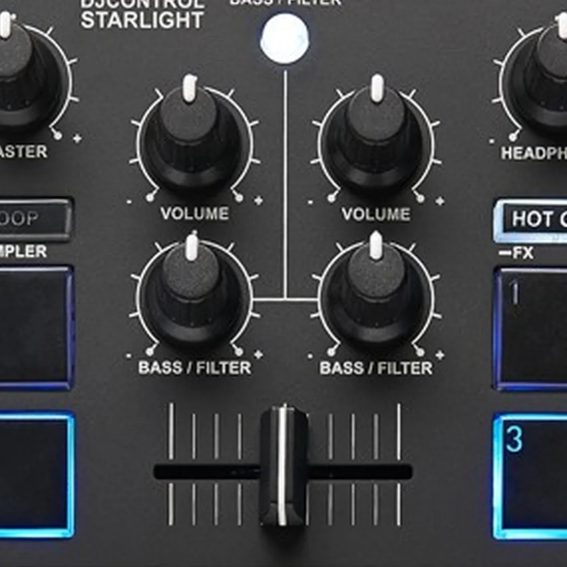 - Ruedas de ecualización de bajos/filtro + ruedas de volumen del deck.