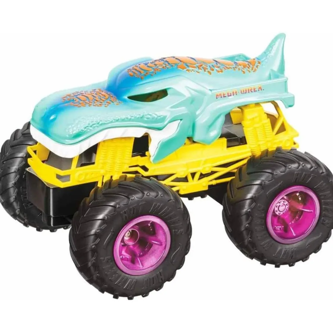 Equipado con un diseño auténtico de Hot Wheels Monster Trucks, el Mega Wrex impresiona con su apariencia fuerte y llamativa. Con dimensiones compactas, es ideal para maniobrar tanto en interiores como en exteriores, ofreciendo horas de diversión asegurada.