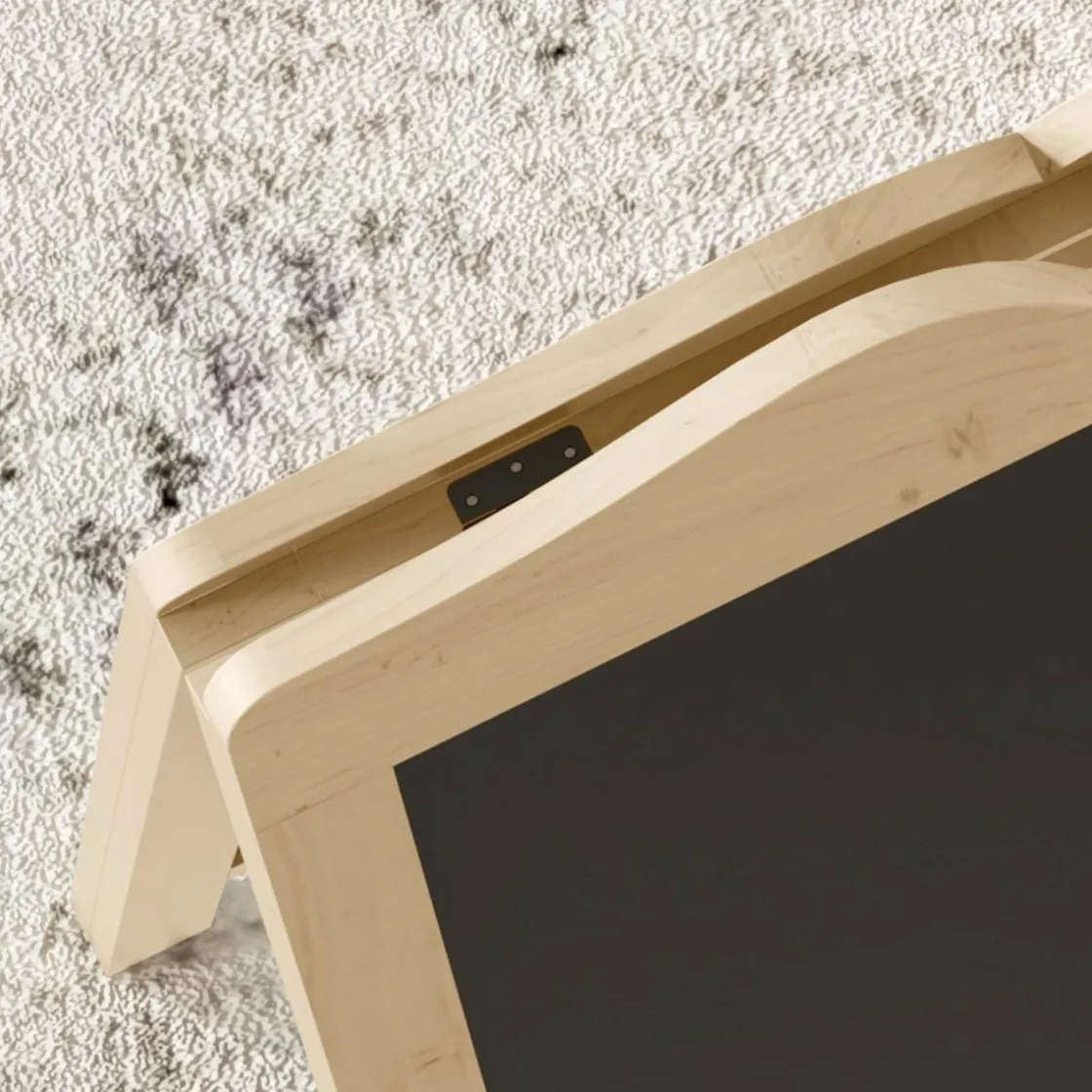 Además, cuenta con una superficie magnética ideal para colocar imanes con notas, mostrar fotos, etc. Gracias a su estructura de madera de abeto y su diseño en forma de A, es resistente y estable. Y lo mejor de todo es que es plegable para poder guardar y mover cómodamente.