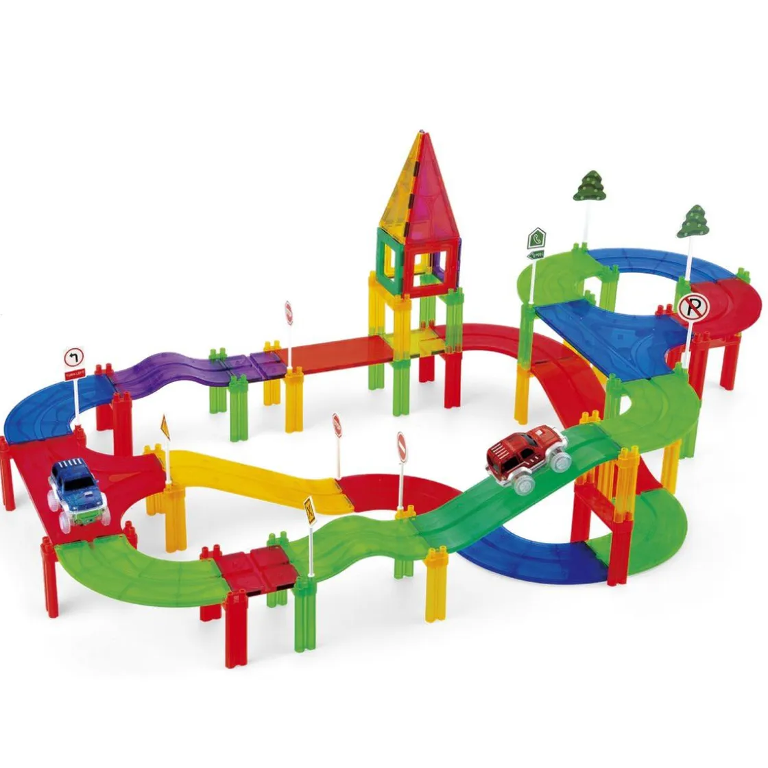 Convierte la diversión en pura velocidad con la Pista Magnética de Zig Zag. Este completo set incluye 52 piezas magnéticas y 87 accesorios para construir circuitos espectaculares llenos de rampas, curvas y túneles. Gracias al sistema de unión magnética, el montaje es sencillo, intuitivo y siempre diferente: ¡cada pista es una nueva aventura por descubrir!