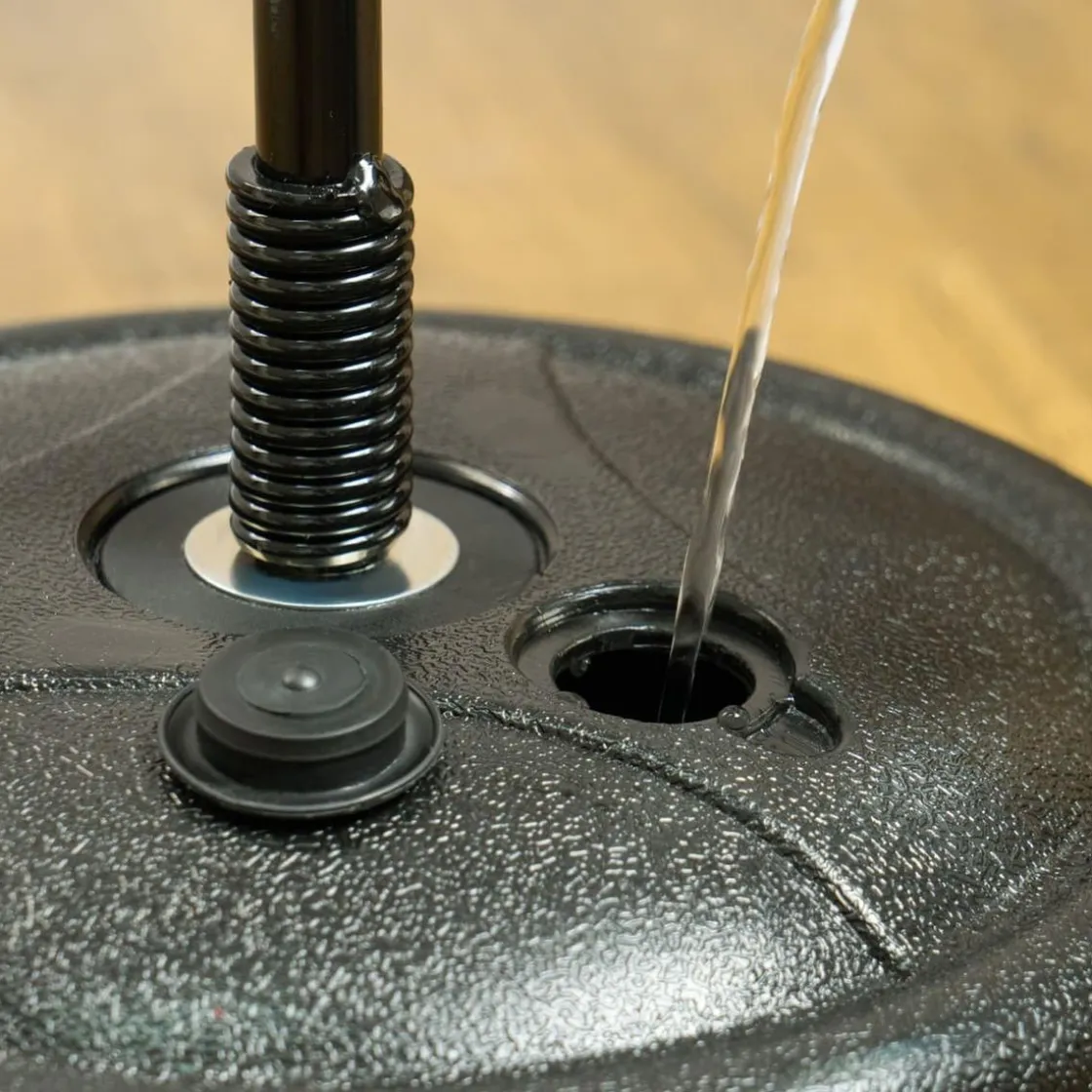 - Base que puede llenarse con agua o arena para mayor estabilidad.