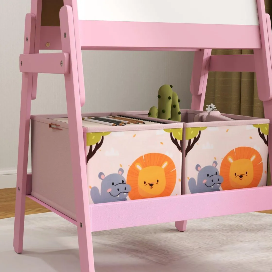 Pizarra 2 en 1 con cajas de tela Rosa